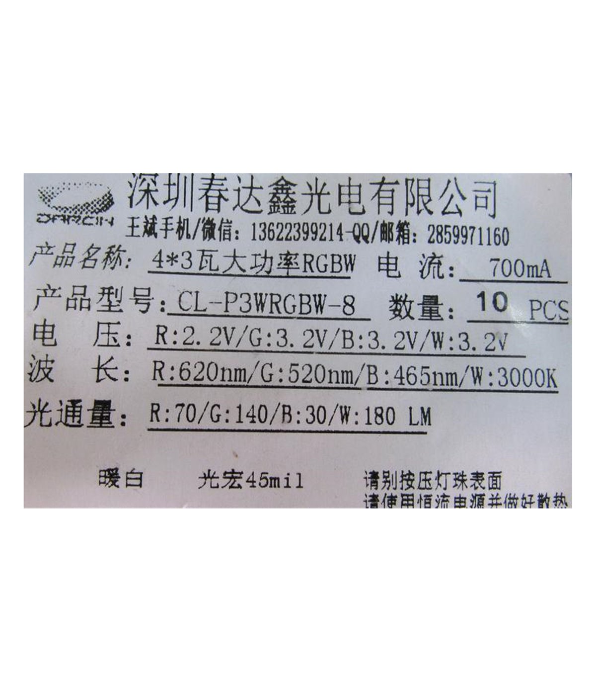 Светодиод RGBW 4 * 3W 6000KОсобенности:1. Высокая яркость, низкая светильник, энергосбережение,2. отличном чипом качества, более длительный срок службы,3.