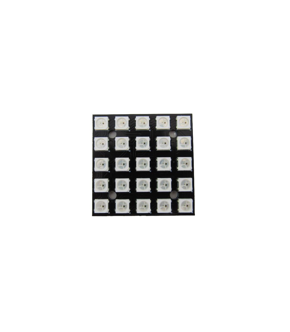 Печатная плата с размещенными на ней 25-ю RGB светодиодами WS2812, управляемыми по последовательной шине. Очень удобно соединять несколько таких плат последовательно. На плате есть крепежные отверстия для монтажа в готовой конструкции.