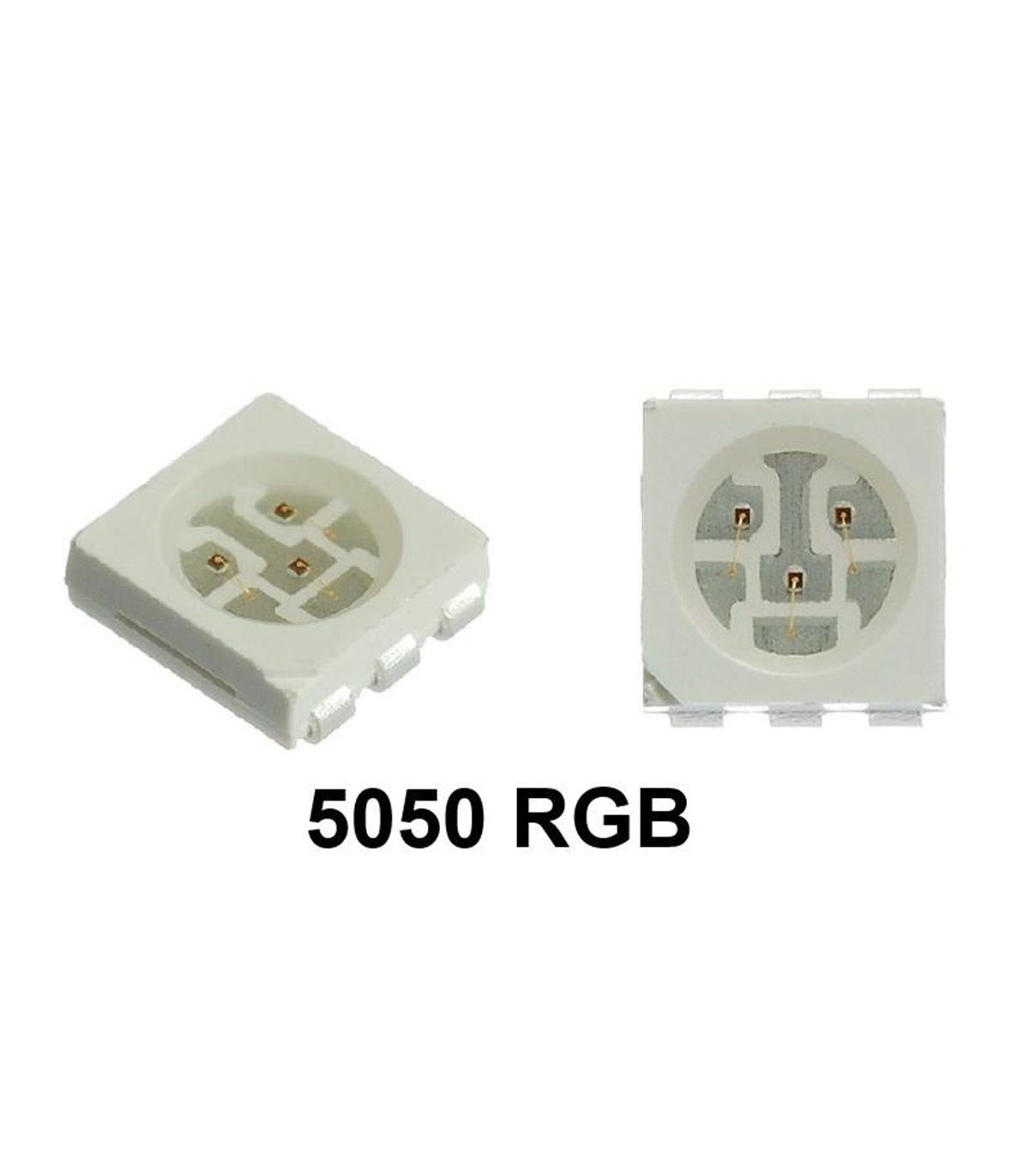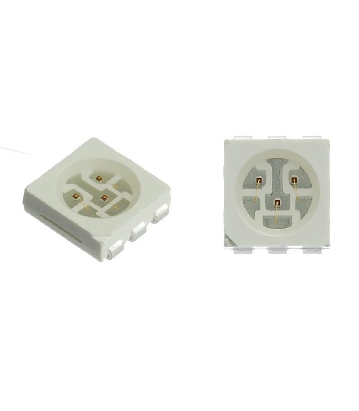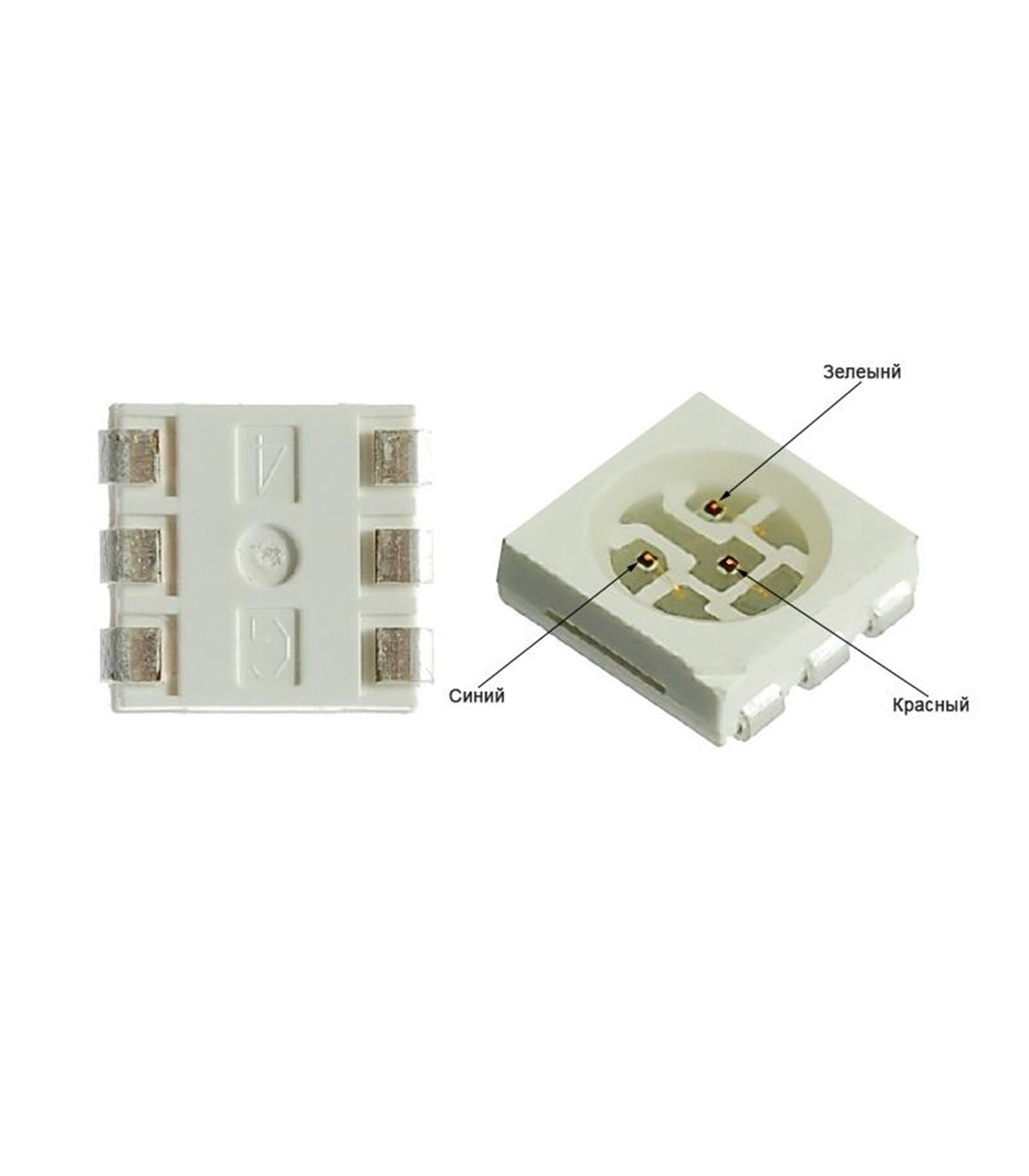 Светодиод для поверхностного монтажа SMD 5050, цвет свечения - RGB. Применяются в современных источниках освещения, таких как светодиодные ленты, лампы, светильники. Так же применяются в качестве подсветки в различных миниатюрных устройствах.