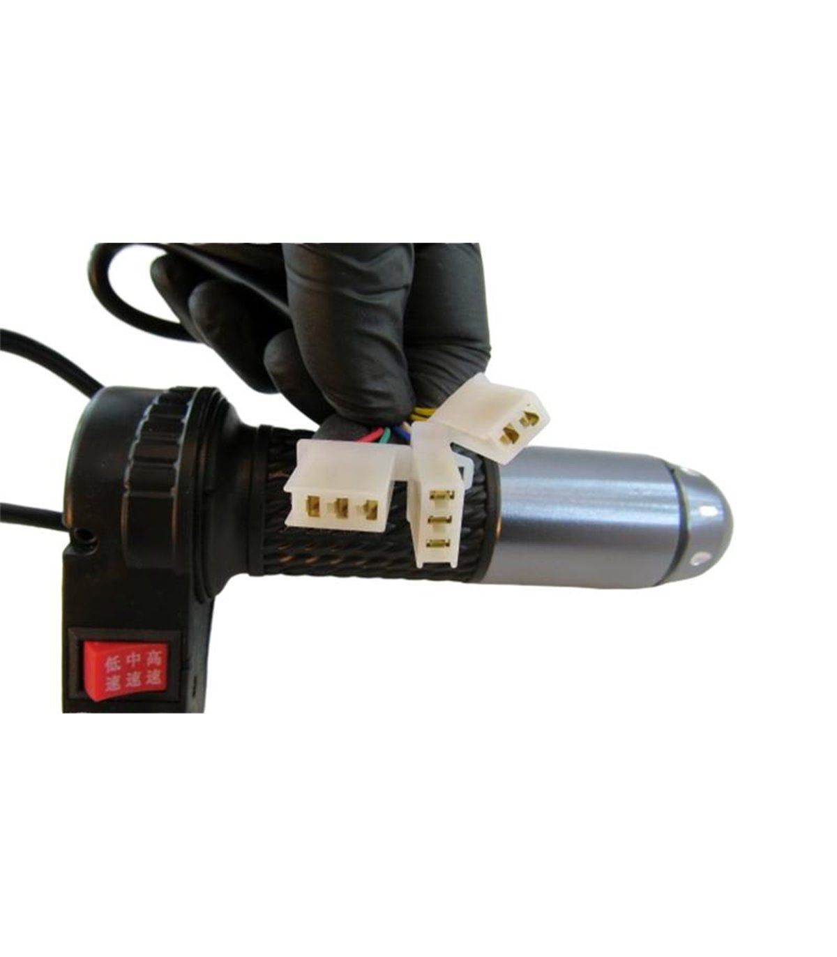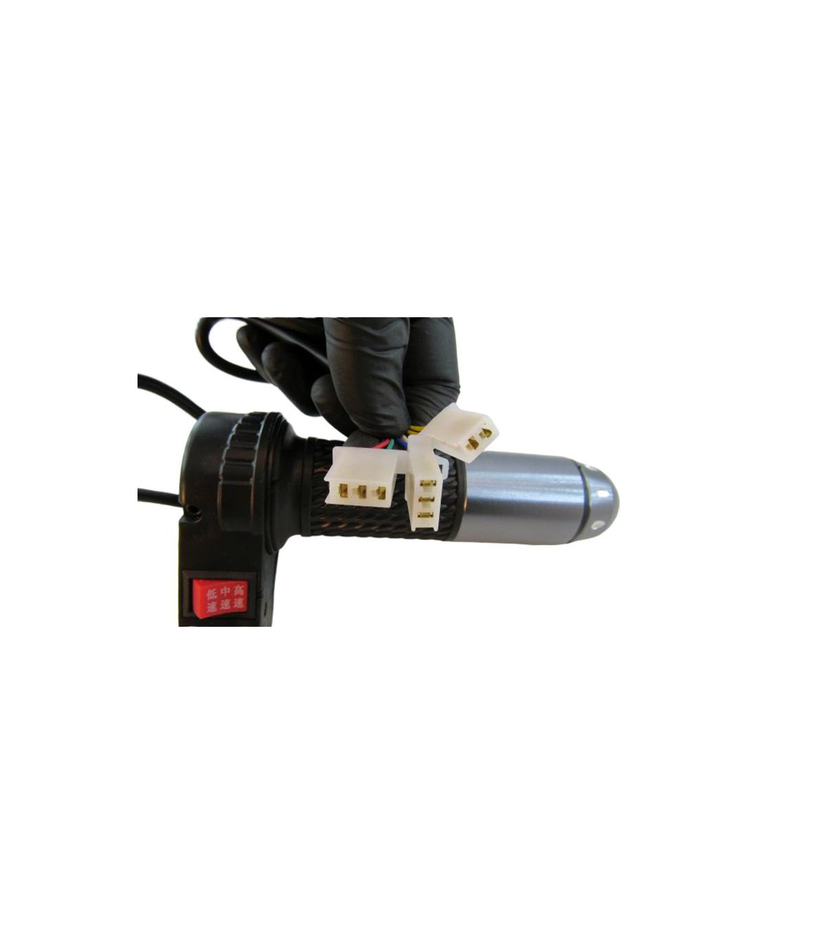 Комплект ручка газа с переключателем на три положения и два положения. Диаметр для крепления - 22мм. Длина кабеля - 44 см. Материал - прорезиненный пластик и металл. В работу приводит поворотное движение правой рукой вниз. Комплект удобен в использовании и долговечен.