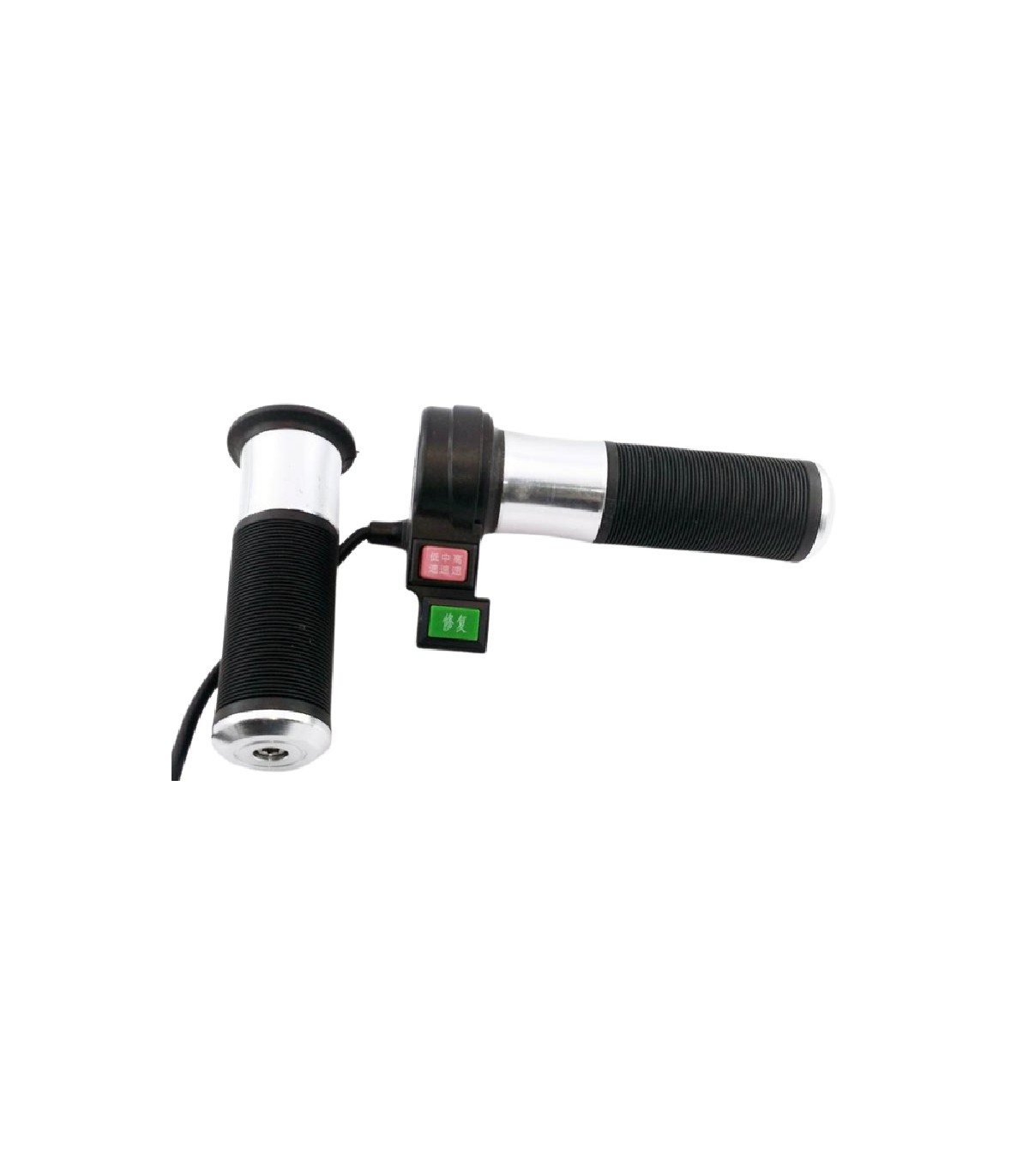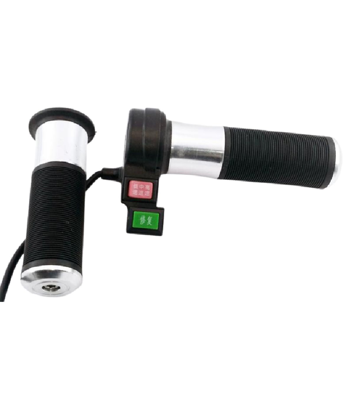 Описание Эта ручка чаще всего используется на электроскутерах, электроквадроциклах и электромотоциклах. Внутренние и наружные окончания ручки газа и парной накладки на левую сторону руля, выполнены из алюминия. Они придают ручке прочность и устойчивость к механическим повреждениям. Рабочая часть ручек, сделана из плотной рифлёной резины. Это обеспечивает хорошее сцепление с ладонями. Вращаемая часть акселератора расположена по всей длине рукоятки.