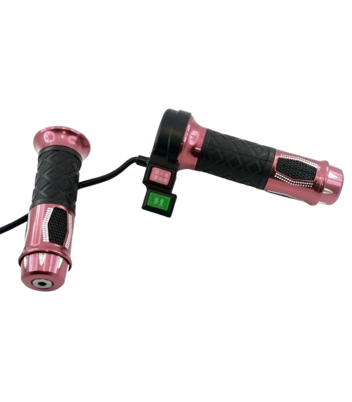 Описание Эта ручка чаще всего используется на электроскутерах, электроквадроциклах и электромотоциклах. Внутренние и наружные окончания ручки газа и парной накладки на левую сторону руля, выполнены из алюминия. Они придают ручке прочность и устойчивость к механическим повреждениям. Рабочая часть ручек, сделана из плотной рифлёной резины. Это обеспечивает хорошее сцепление с ладонями. Вращаемая часть акселератора расположена по всей длине рукоятки.
