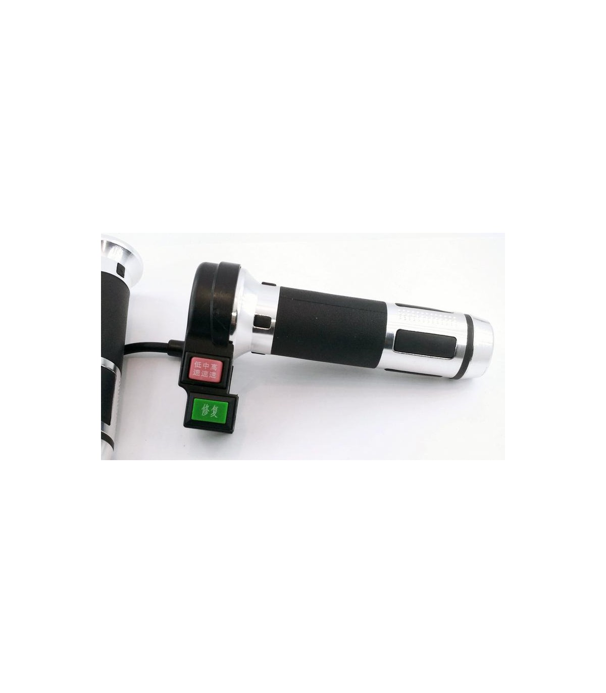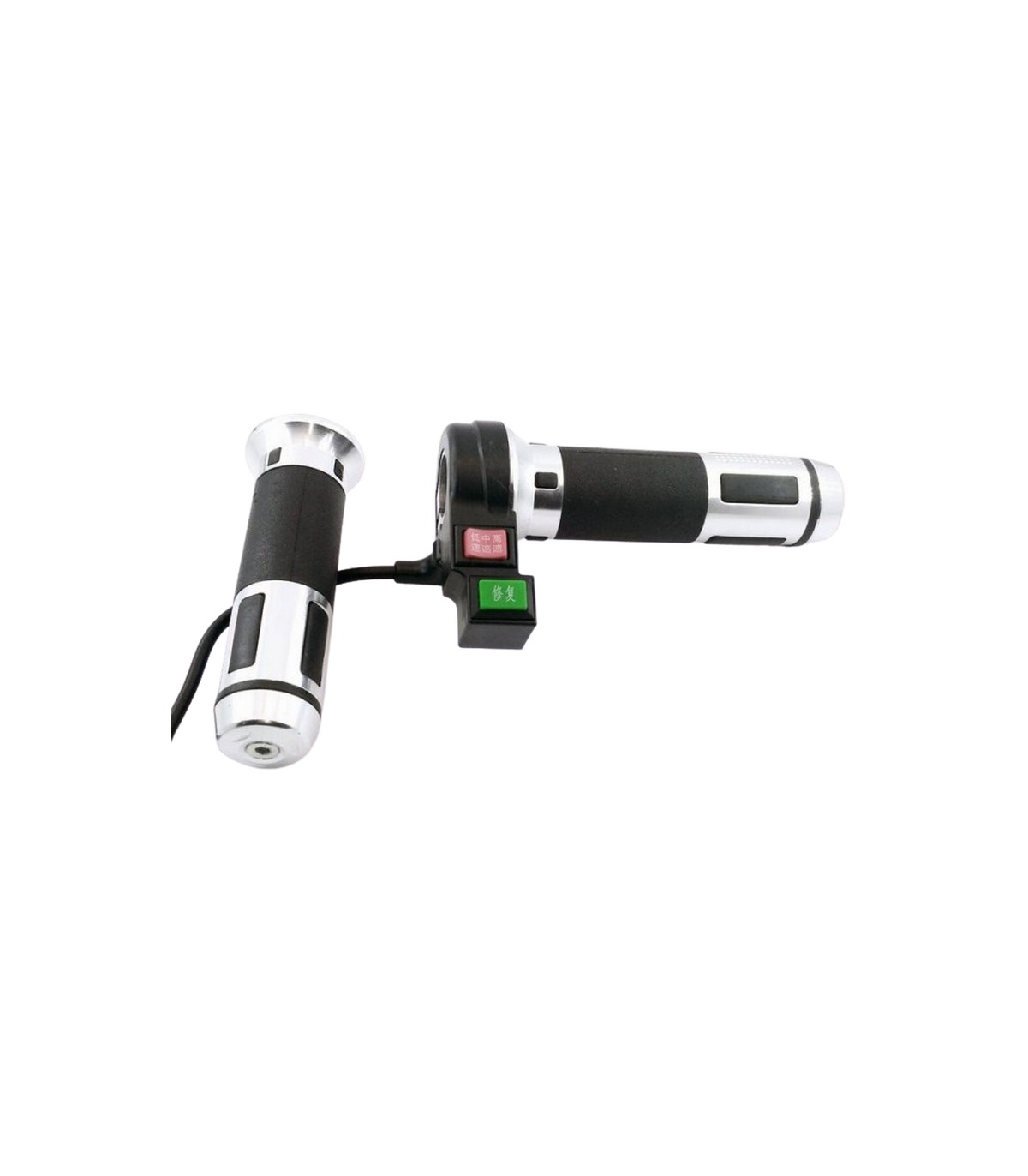 Описание Эта ручка чаще всего используется на электроскутерах, электроквадроциклах и электромотоциклах. Внутренние и наружные окончания ручки газа и парной накладки на левую сторону руля, выполнены из алюминия. Они придают ручке прочность и устойчивость к механическим повреждениям. Рабочая часть ручек, сделана из плотной рифлёной резины. Это обеспечивает хорошее сцепление с ладонями. Вращаемая часть акселератора расположена по всей длине рукоятки.