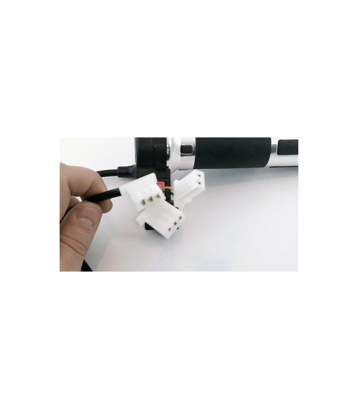 Ручка устанавливается на руль стандартного диаметра – 22мм и фиксируется на нём с помощью винта под шестигранный ключ. Винт стягивает металлический кронштейн, встроенный в ручку, который надёжно удерживает ручку на руле. Внутри ручки имеется датчик Холла SS-49, который при повороте ручки смещается относительно постоянного магнита. При этом, на выходе из датчика Холла меняется напряжение в диапазоне 1 – 4.2v. В соответствии с уровнем напряжения, поступающего от ручки газа, контроллер изменяет скорость вращения мотор колеса или электродвигателя.