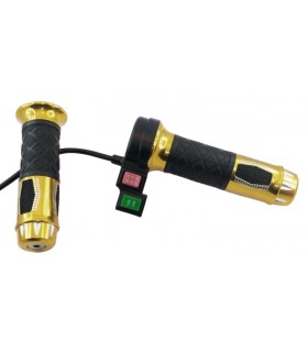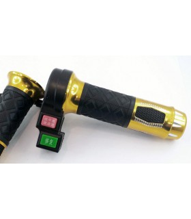 Универсальная ручка газа велосипеда с переключателем и кнопкой золотой комплект.Универсальная ручка акселератора (скорости) предназначена для установки на электровелосипеды, электроскутеры, электроквадроциклы,...