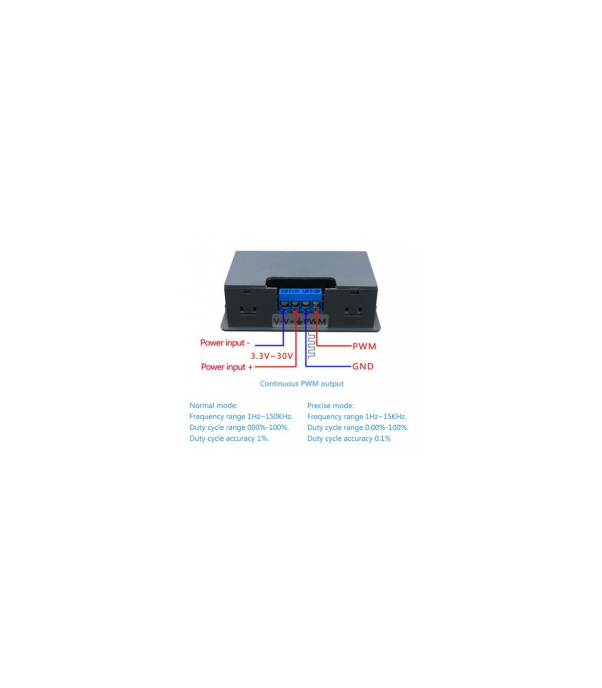 Генератор сигналов XY-KPWM – это устройство, обеспечивающее электрические сигналы на разных частотах, прямоугольных волнах и исходных уровнях. Он используется в качестве источника сигнала или источника возбуждения для тестирования. Широко используется в производственной практике и технологии.Особенности:С внешним корпусомЖК-дисплей высокой четкостиПоддержка UARTПоддержка регулировки частотыПоддержка регулировки рабочего циклаВысокая точностьПоддержка функции памяти для отключения питанияРучка поддерживает функцию блокировки.Поддержка включения выходаПараметры:Модель: XY-KPWM,Рабочее напряжение: DC 3,3 В-30 В,Диапазон частот (обычный режим): 1 Гц ~ 150 кГц,Диапазон частот (точный режим): 1 Гц ~ 15 кГц,Точность частоты: 2%,Точность рабочего цикла: 1% в нормальном режиме.