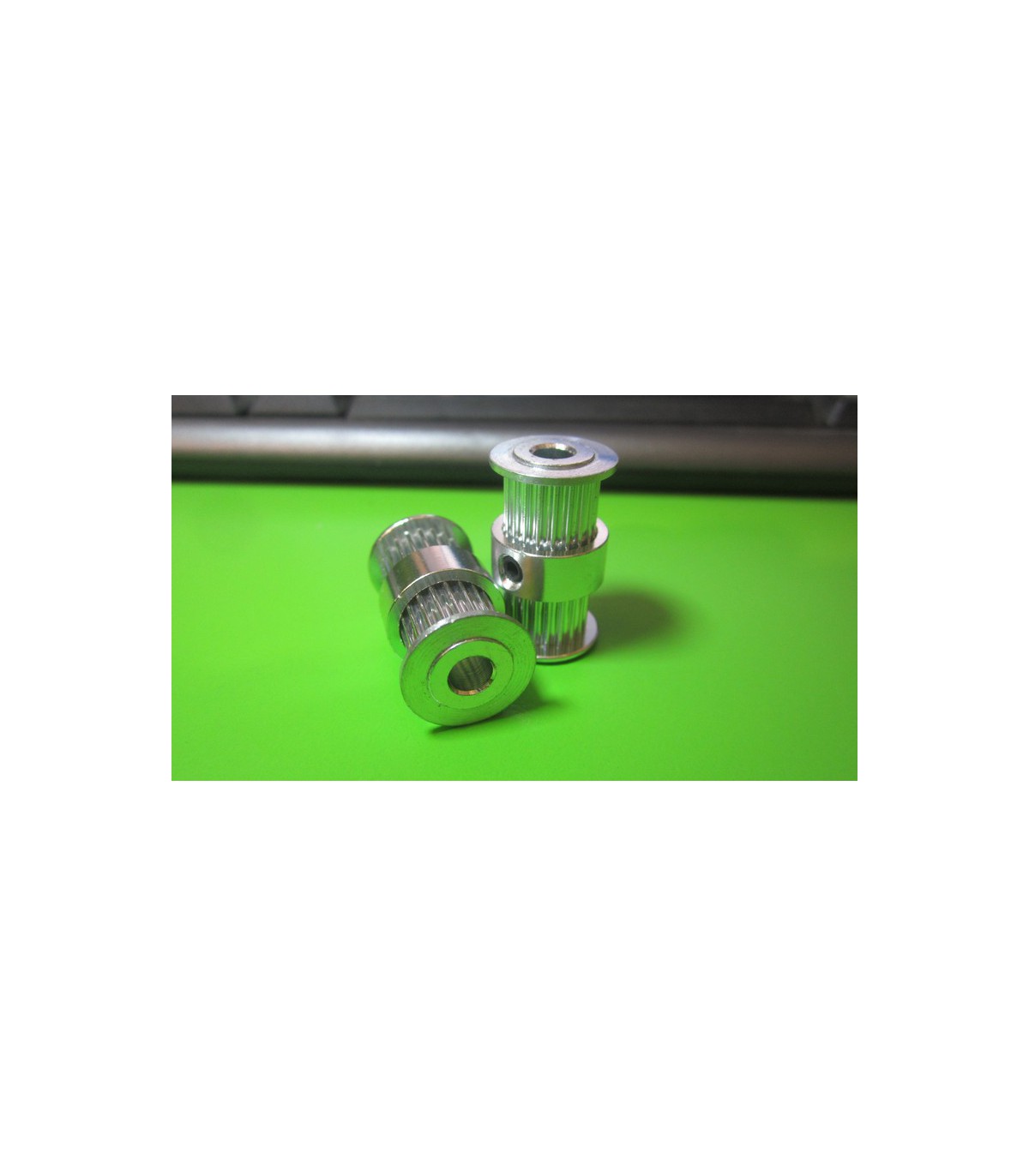 Зубчатые ролики (шпульки) используют при построении осей 3D-принтеров. В комплекте с роликами применяют ремни GT2 с шириной 6 мм. Материал ролика – алюминиевый сплав, количество зубьев – 20. Ролики надевают на валы М5 шаговых двигателей «Nema17». Крепление одного ролика состоит из двух винтов «М3 Аллен».