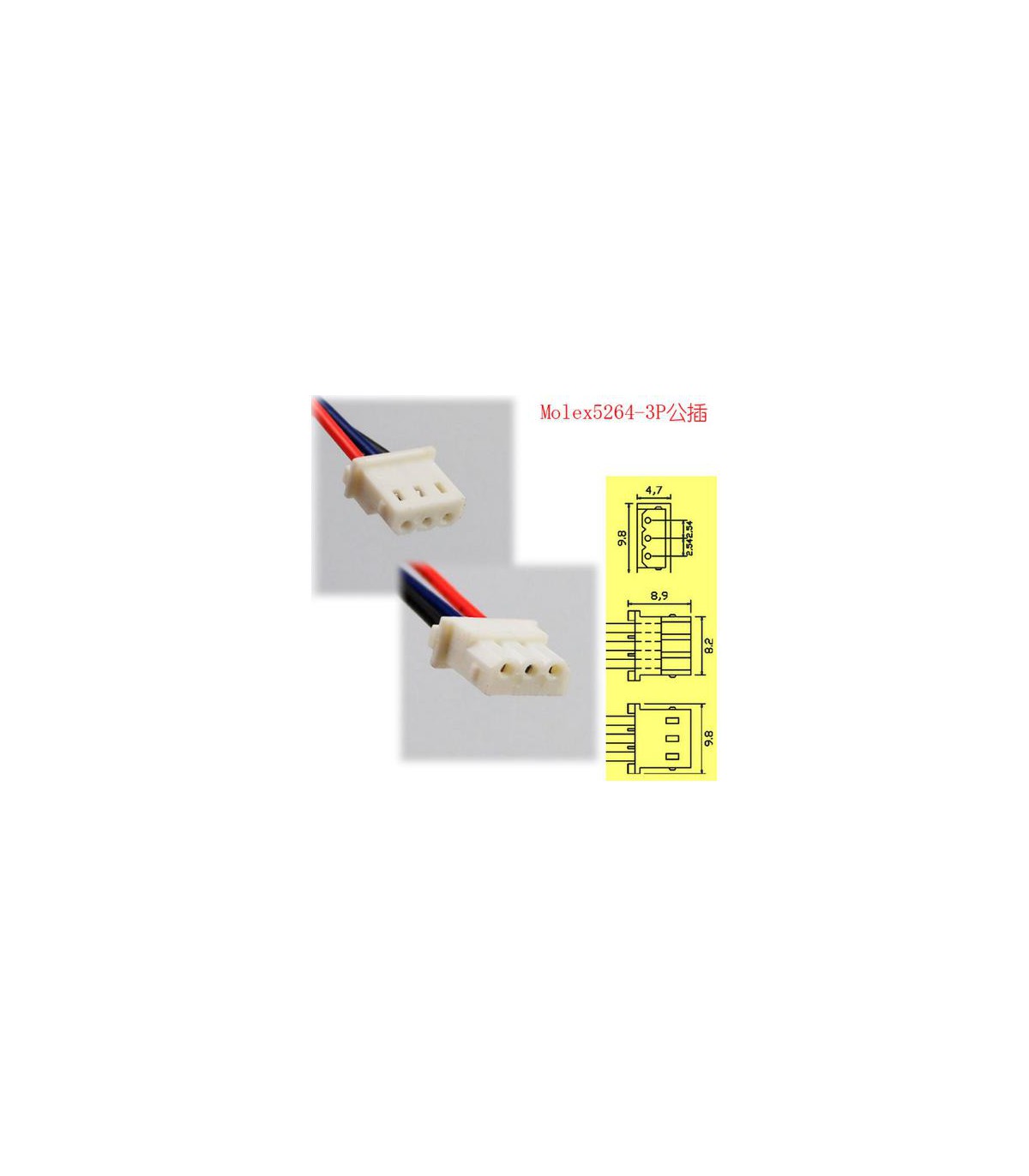 Штекер Molex 5264 3pin 15см. Серія Molex ідеально підходить для підключення високої щільності до друкованих плат. Зібрані роз'єми забезпечують низький контактний опір і високу надійність.