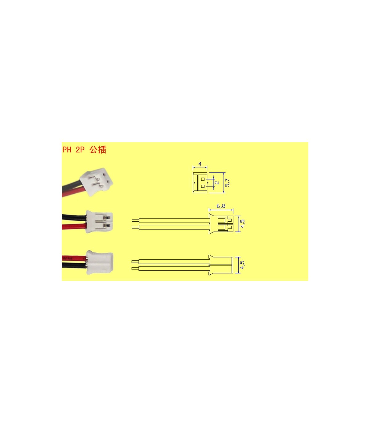 Штекер с кабелем Ph2.0 2pin. Размеры указаны на рисунке.