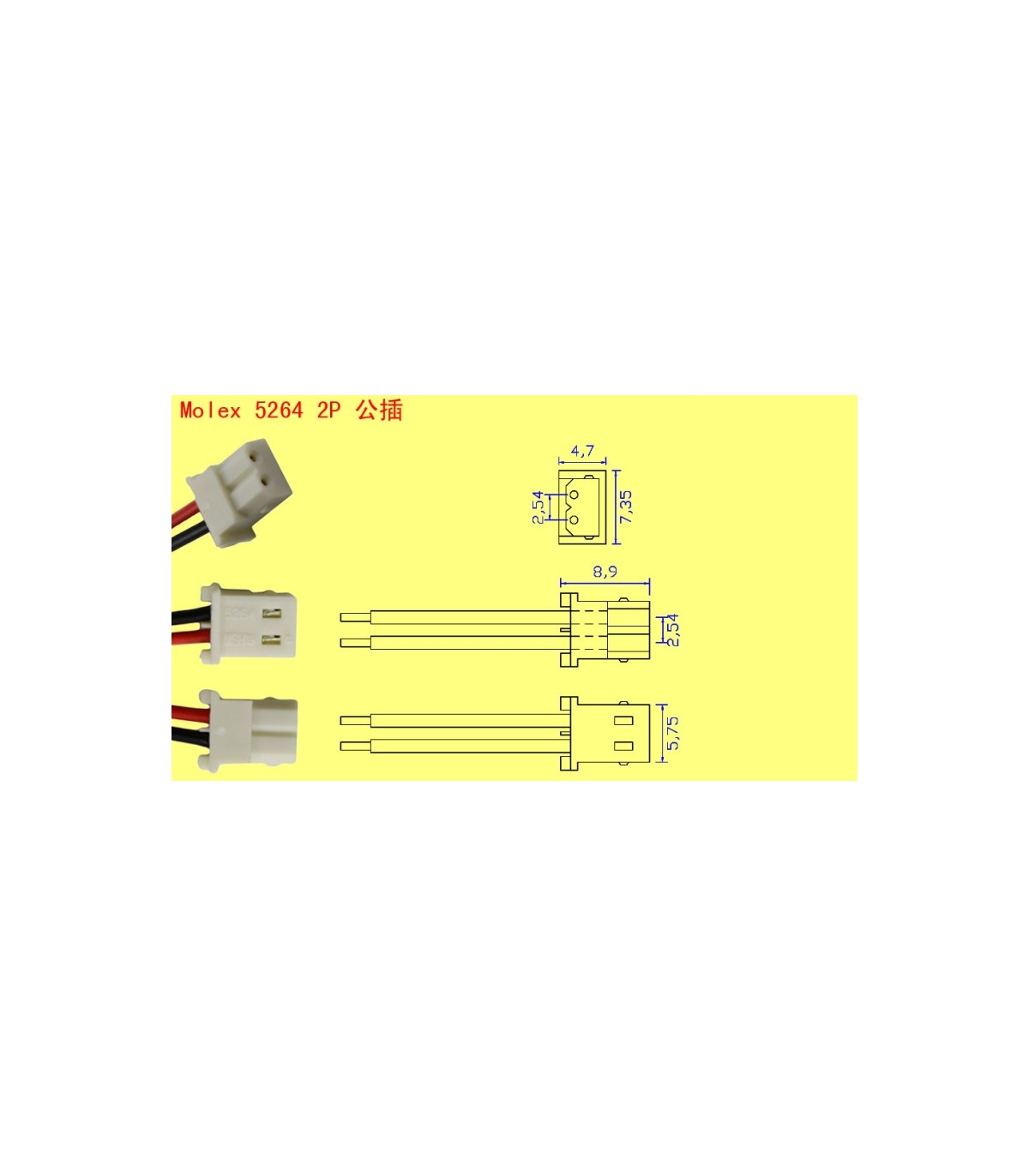 Штекер с кабелем Molex 5264 2pin. Размеры указаны на рисунке.