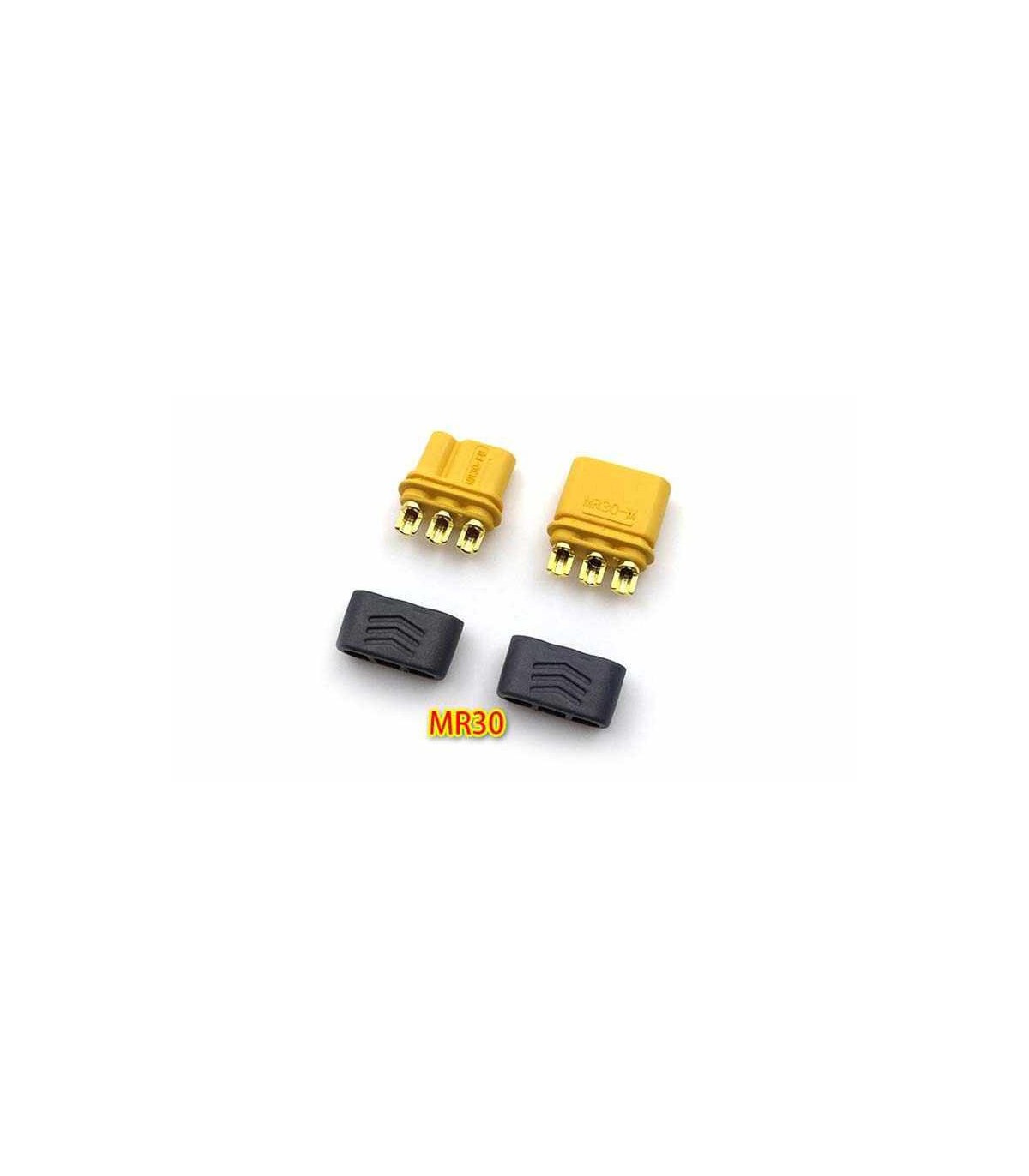 Комплект разъемов MT30 3 Pole для защиты ваших соединений двигателя и ESC. В комплекте разъемы папа и мама.Технические характеристики:Размеры: 20х10х10 мм (в собранном виде )Вес: 2,96 г (комплекта)Подходит для: 16AWG...