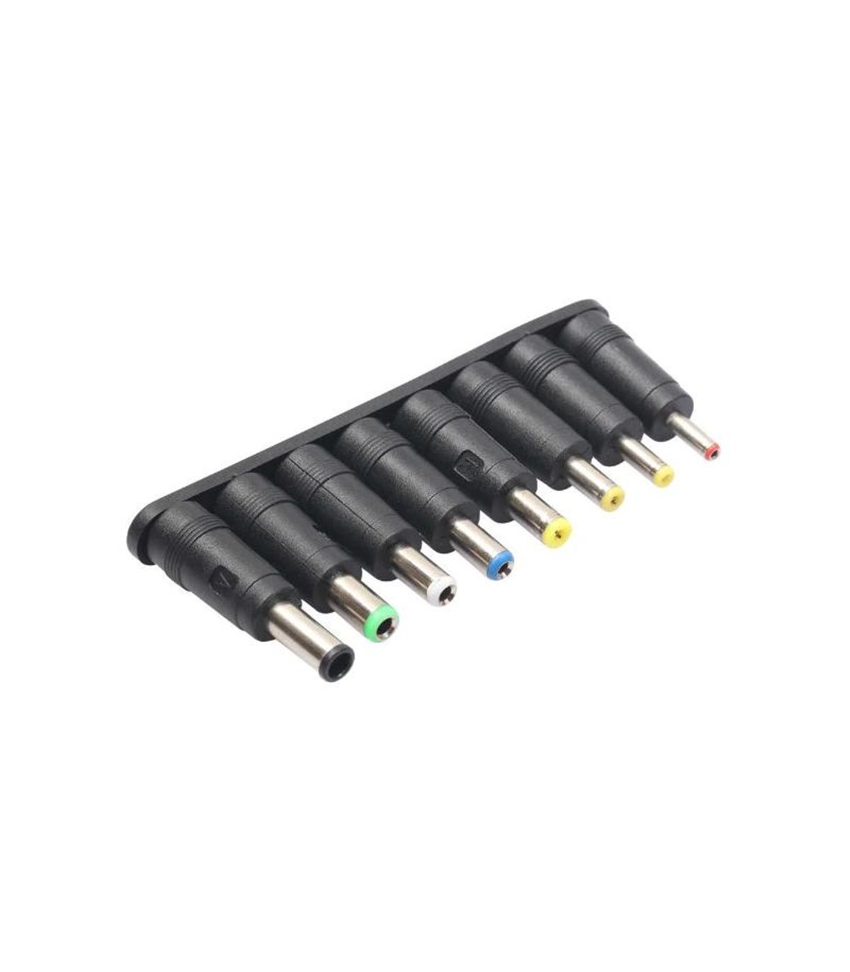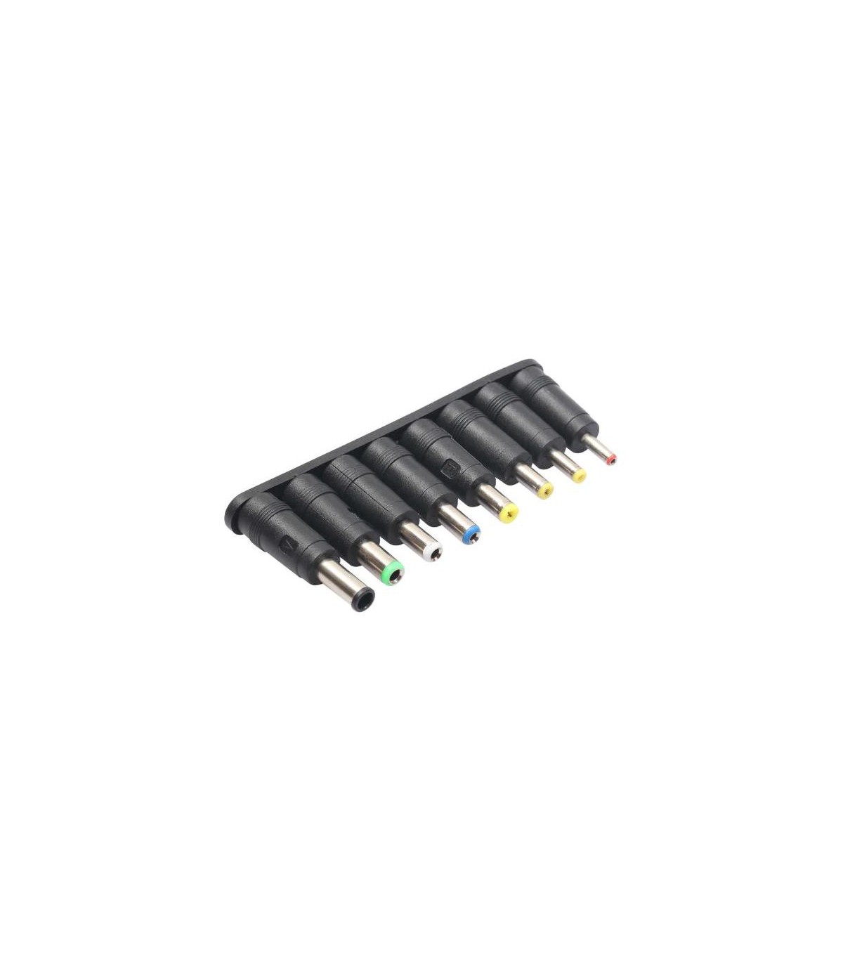 Адаптеры питания для ноутбуков переходники набор 8 штук – универсальные адаптеры питания для ноутбуков, многофункциональный набор переходников для зарядки имеет 8 различных разъемов, подходит для ноутбуков Dell, HP, Sumsang, Asus, Acer, Toshiba, Sony, Compaq, Liteonit, Fujitsu, NEC, а так же для подключения различных мобильных устройств, переходники подключаются к разъёму питания 2.1 х 5.5. Адаптеры питания для ноутбуков применяются для подключения ноутбуков, а так же различного оборудования к источникам питания, например, аудио плееров, CD плееров, MP3, MP4, радиоприёмников, фотоаппаратов, всевозможных зарядных устройств и т.п. Данный универсальный набор переходников совместим почти со всеми моделями ноутбуков таких производителей как Dell, HP, Sumsang, Asus, Acer, Toshiba, Sony, Compaq, Liteonit, Fujitsu, NEC. С помощью этого универсального набора адаптеров для ноутбуков можно питать, заряжать различные мобильные и портативные устройства. Набор адаптеров питания для ноутбуков очень популярен среди автомобилистов, с его помощью можно можно подключить различные мобильные устройства к сети автомобиля используя преобразователь напряжения. Всегда удобнее держать один, но хороший набор адаптеров, который подойдет для всех устройств, чем целую кучу кабелей, каждый из которых подходит только к одному индивидуальному устройству. Адаптеры питания для ноутбуков переходники набор 8 штук подключаются к источнику питания через стандартный разъем 2.1 х 5.5 ( вилка / папа ). Маркировка переходников Вход: стандартный разъем питания 2.1 х 5.5 ( вилка / папа ) Выход: Output Tip A: 6.0x4.0х1mm for Sony,Fujitsu,Samsung laptops. Output Tip B: 6.3x3.0mm for Toshiba, NEC laptops. Output Tip C: 5.5x2.5mm for Liteonit, Fujitsu, HP laptops. Output Tip D: 5.5x2.1mm for Compaq laptops. Output Tip E: 5.5x1.7mm for Acer and Sony laptops. Output Tip F: 4.8x1.7mm for Asus laptops. Output Tip G: 4.0x1.7mm for Asus, Acer and Sony laptops. Output Tip H: 3.5x1.35mm for Sharp, Dell laptops.
