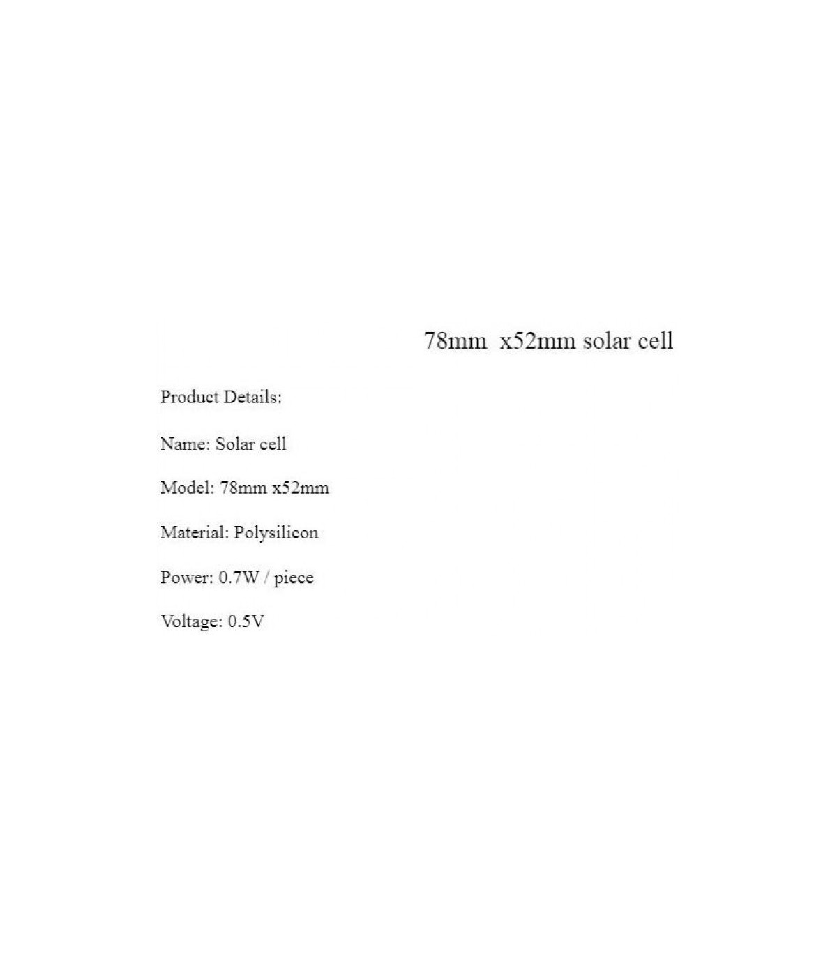 Фотоэлемент поликремний 78*52мм 0.5V 0.7W poly.