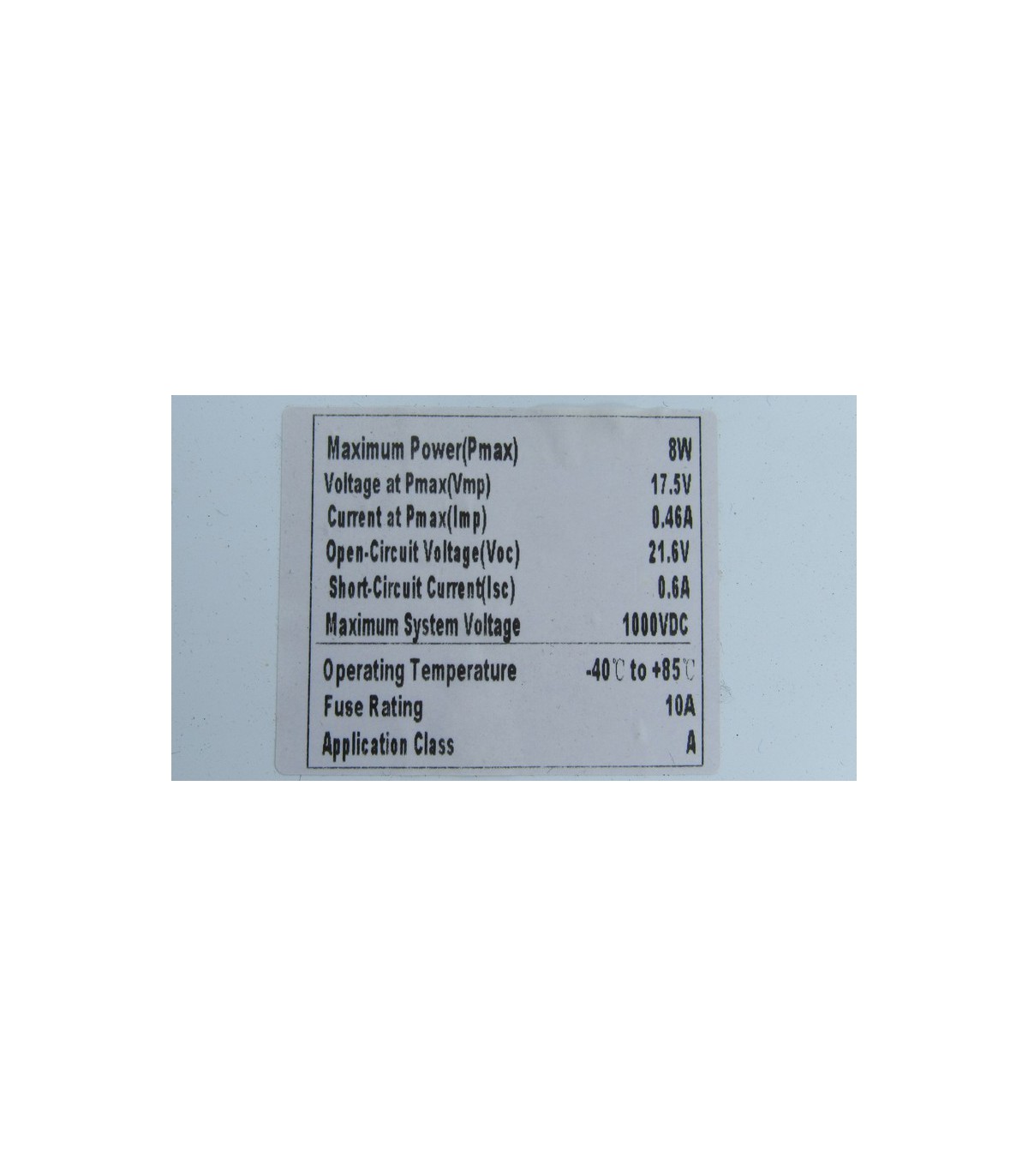 Солнечная панель поликристалл 8W 18V. Очень легкая по весу, при этом крепкая и надежная в использовании. Сзади на солнечной панели имеется место под выводной кабель, к которому можно припаять преобразователь для зарядки гаджетов.