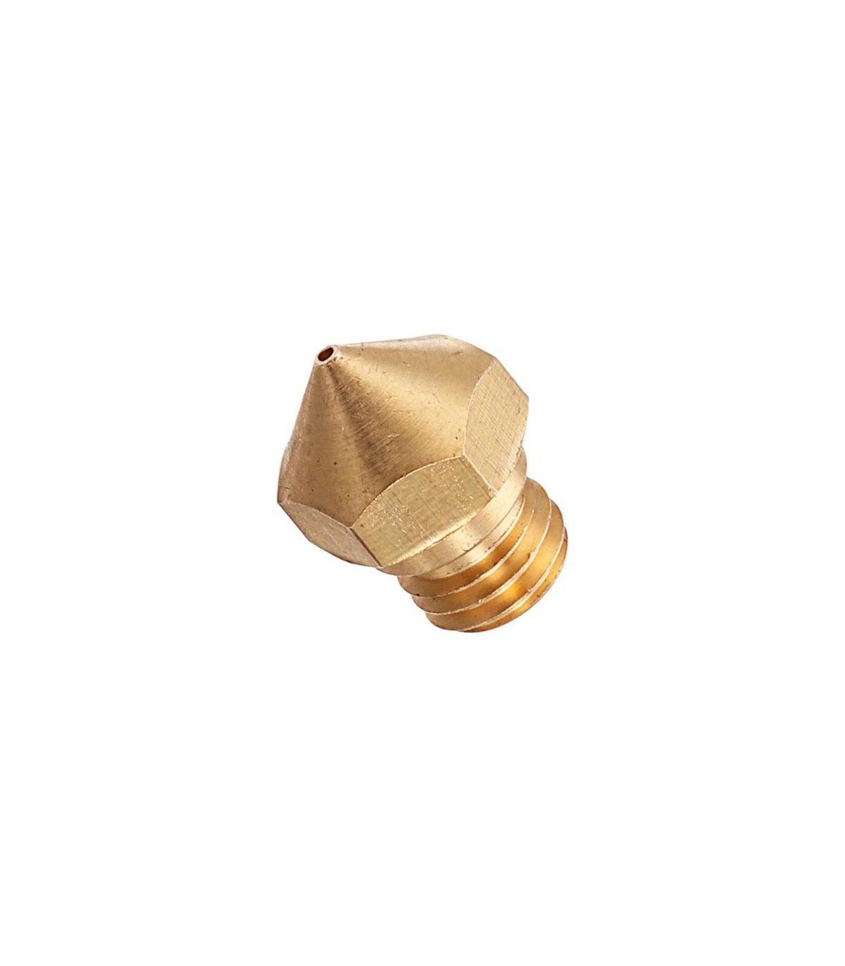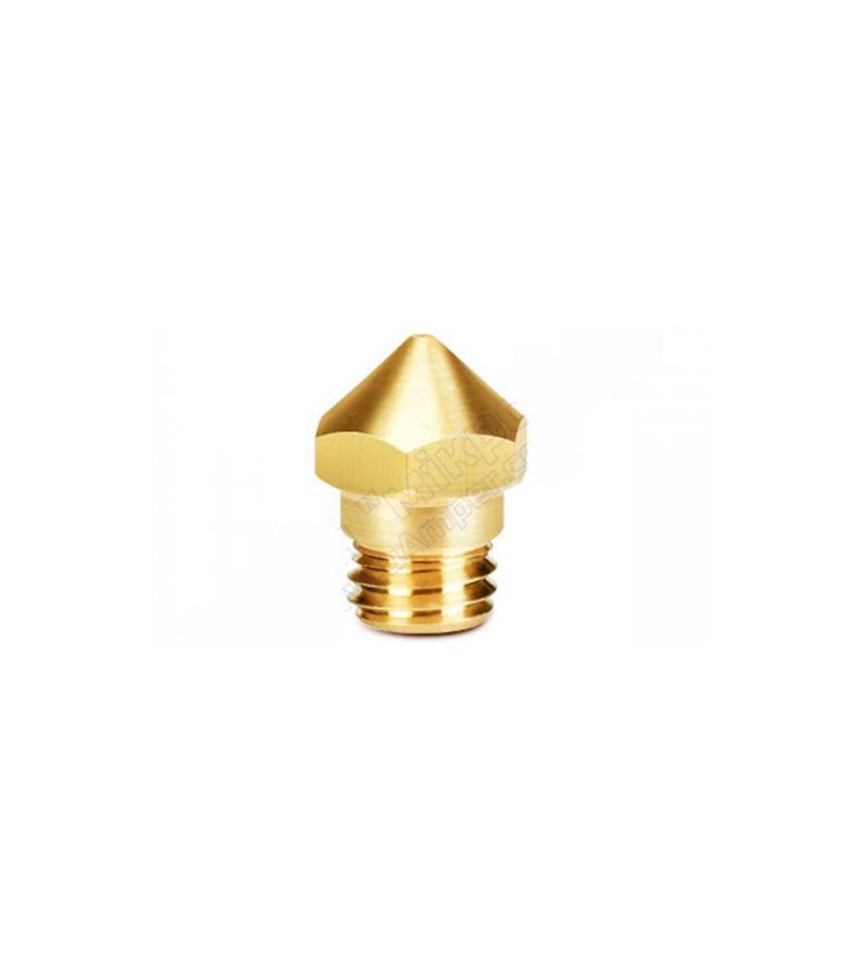Сопло для 3D-принтера создано из медного сплава. Конструкция состоит из резьбовой части и головки. В центре сопла сделано специальное сквозное отверстие, который сужается на другом конце.