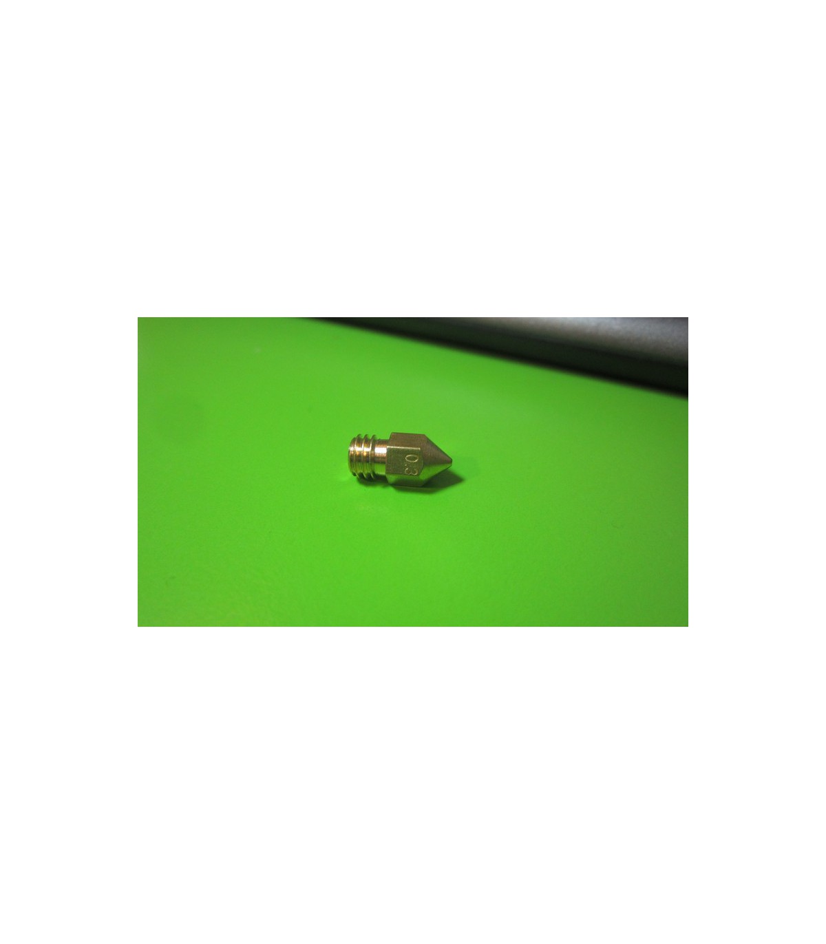 Сопло для 3D-принтера создано из медного сплава. Конструкция состоит из резьбовой части и головки. В центре сопла сделано специальное сквозное отверстие, который сужается на другом конце. Сопло нужно вкрутить в нагревательный блок, поэтому основа создана в форме гайки под ключ номер 6. Резьбовая часть имеет резьбу М6. Эта деталь подходит для всех стандартных экструдеров, работающих с филаментом. Установка такого сопла значительно улучшит качество печати, но время при проведении процедуры увеличится. Технические характеристики Вид сопла МК 8 Габариты сопла (диаметр х высота): 8 х 13 мм Диаметр входного отверстия: 1.75 мм Диаметр выходного отверстия: 0.3 мм Диаметр резьбы для установки в нагревательный блок: М6 Вес сопла: 2 г Материал: медный сплав