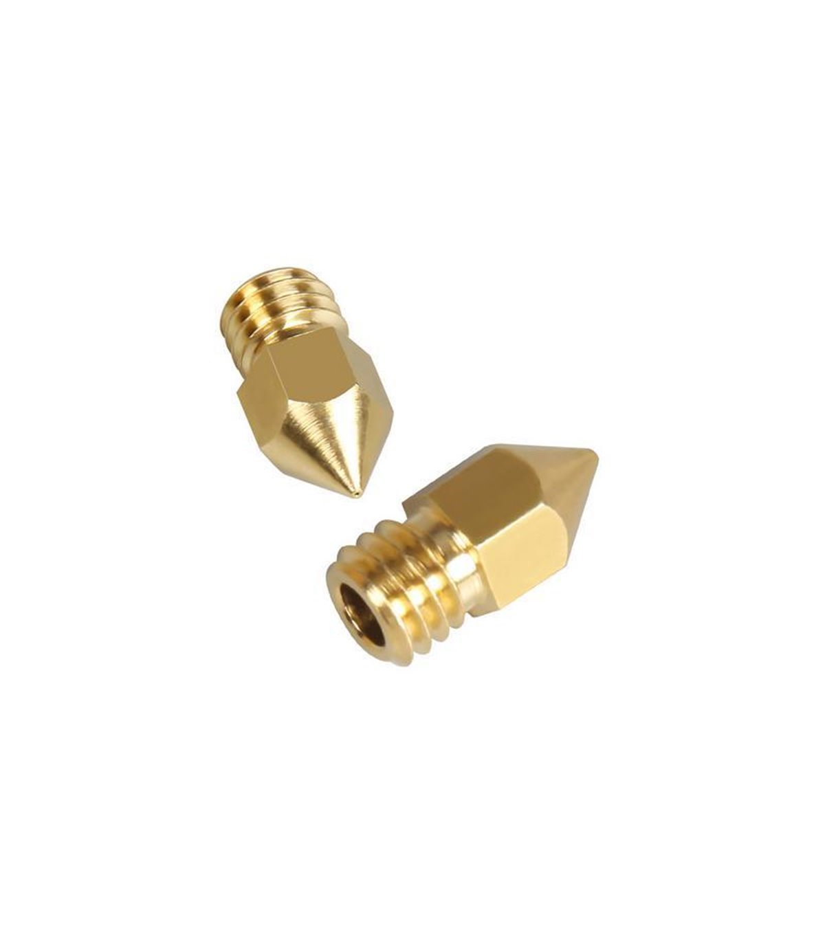 Сопло для 3D-принтера под MK8 нить 1.75мм 0.1 мм.Диаметр исходное откроет 0.1 ммДиаметр Винт для установки в нагревательной блок: МК8Материал: латуньРазмер: 13 х 6 ммЧем меньше выходной диаметр сопла, тем вище точность работы, но медленнее сам процесс печати.