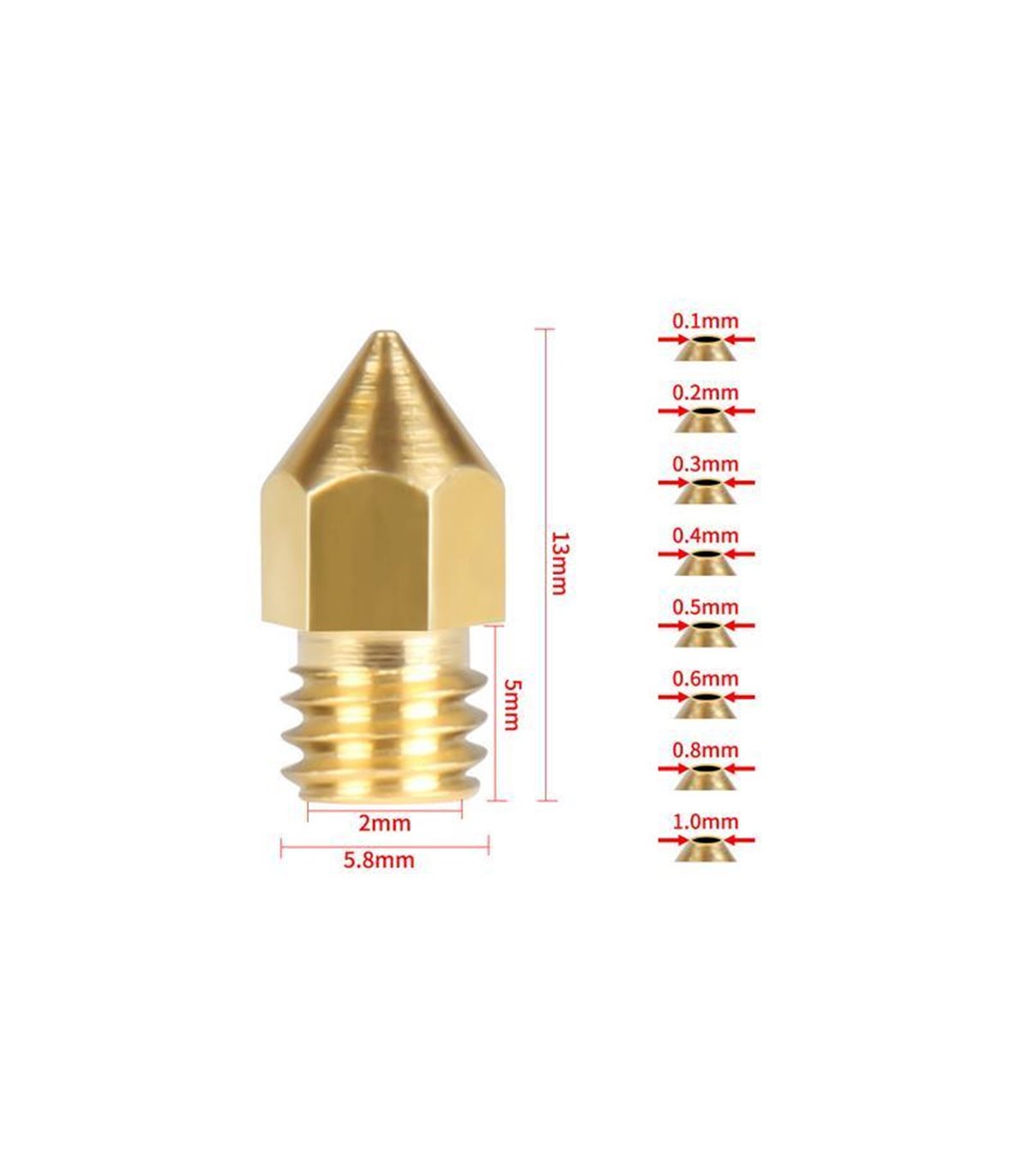 Диаметр исходное откроет 0.1 мм Диаметр Винт для установки в нагревательной блок: МК8 Материал: латунь Размер: 13 х 6 мм
