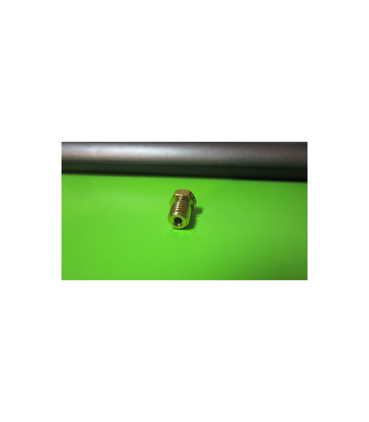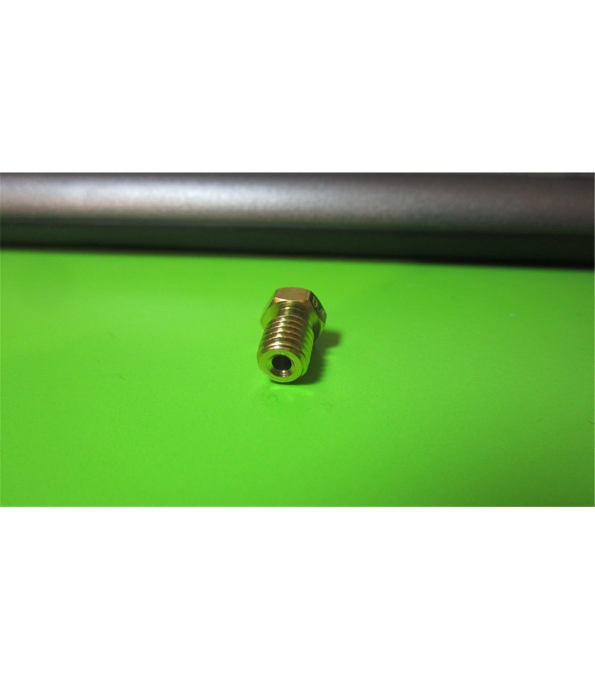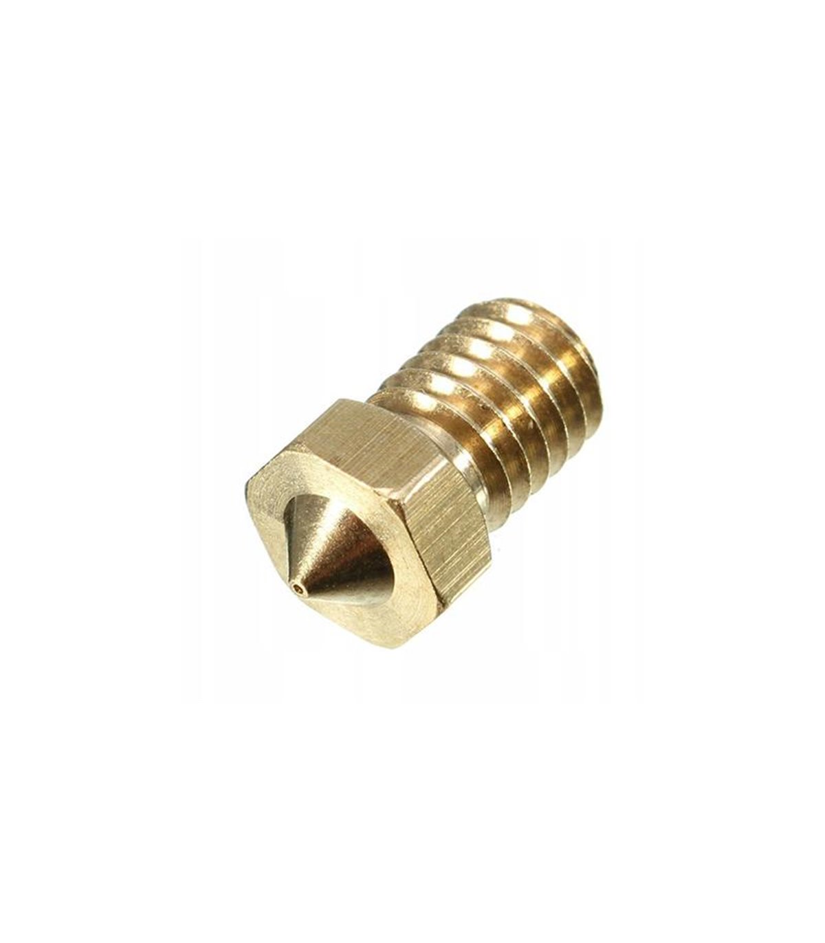 Сопло для 3D-принтера создано из медного сплава. Конструкция состоит из резьбовой части и головки. В центре сопла сделано специальное сквозное отверстие, который сужается на другом конце.