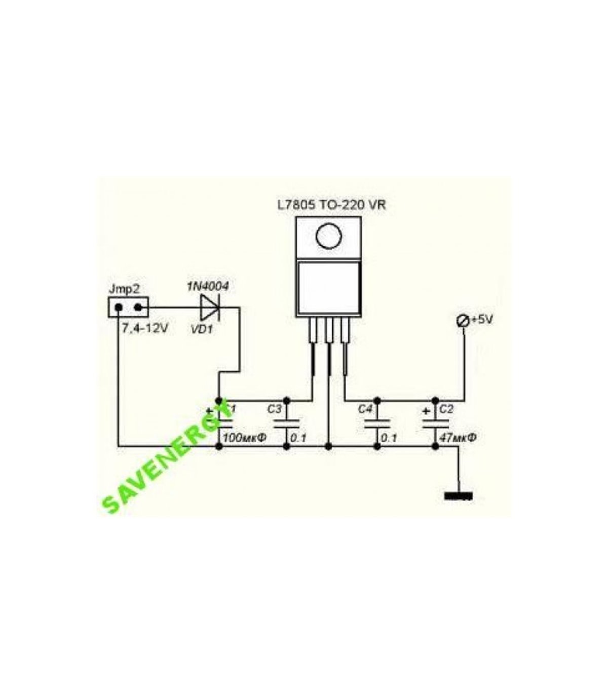 Стабилизатор напряжения построен на основе микросхемы LM2596. Данная микросхема работает в импульсном режиме, благодаря чему имеет высокий КПД, что позволяет пропускать ток до 2 А не нуждаясь в теплоотводе. Для...