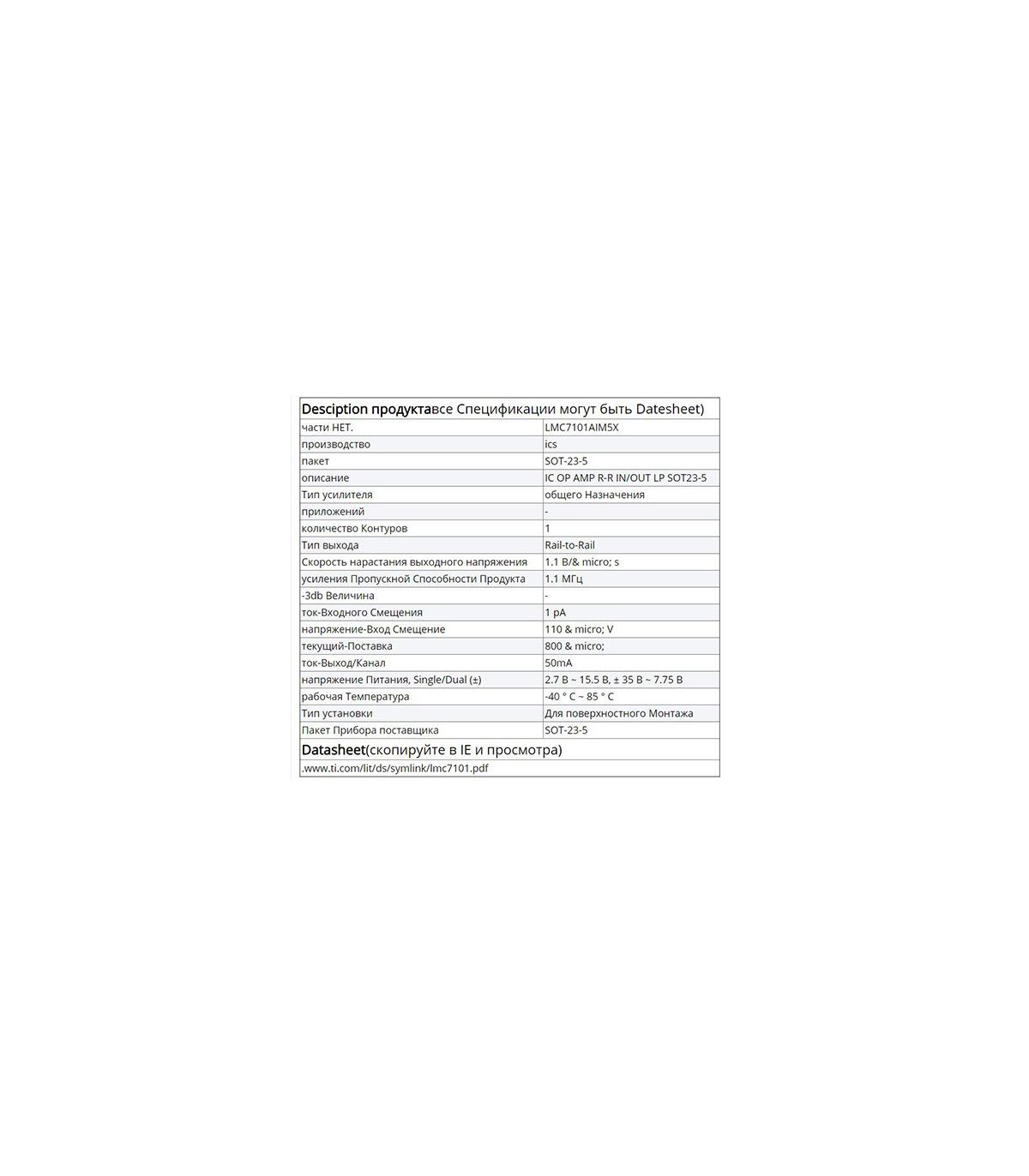 Микросхема стабилизатор напряжения LMC7101A sot23-5.