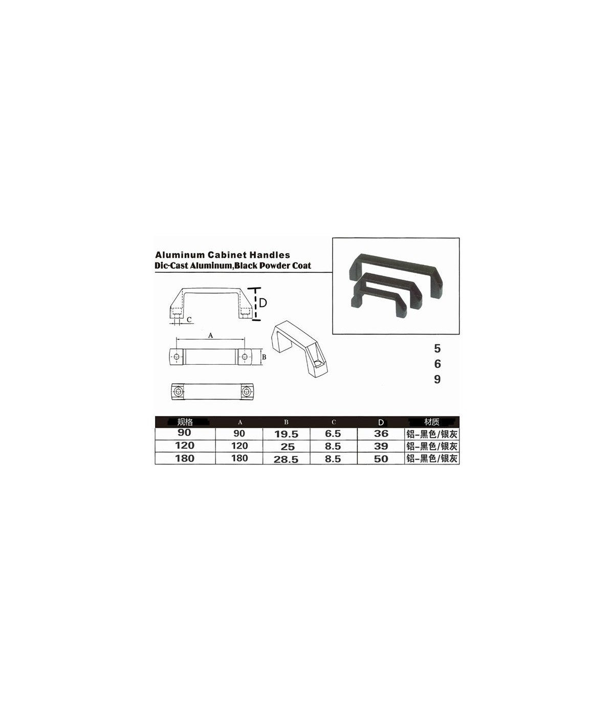 Пластиковая ручка под профиль черная 120мм.