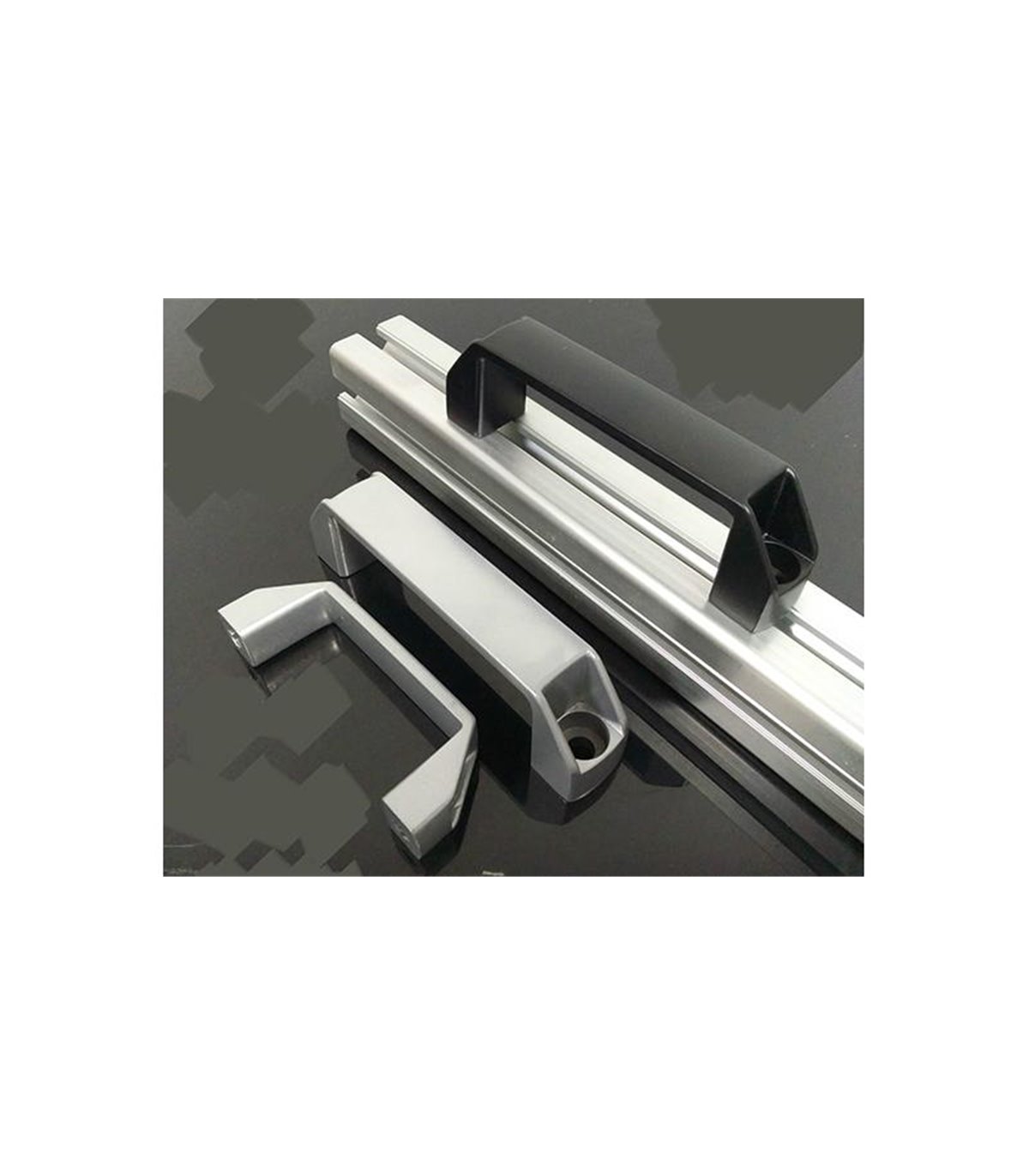 Алюминиевая ручка под профиль черная 180мм. Диаметр отверствия под болт - 8мм.