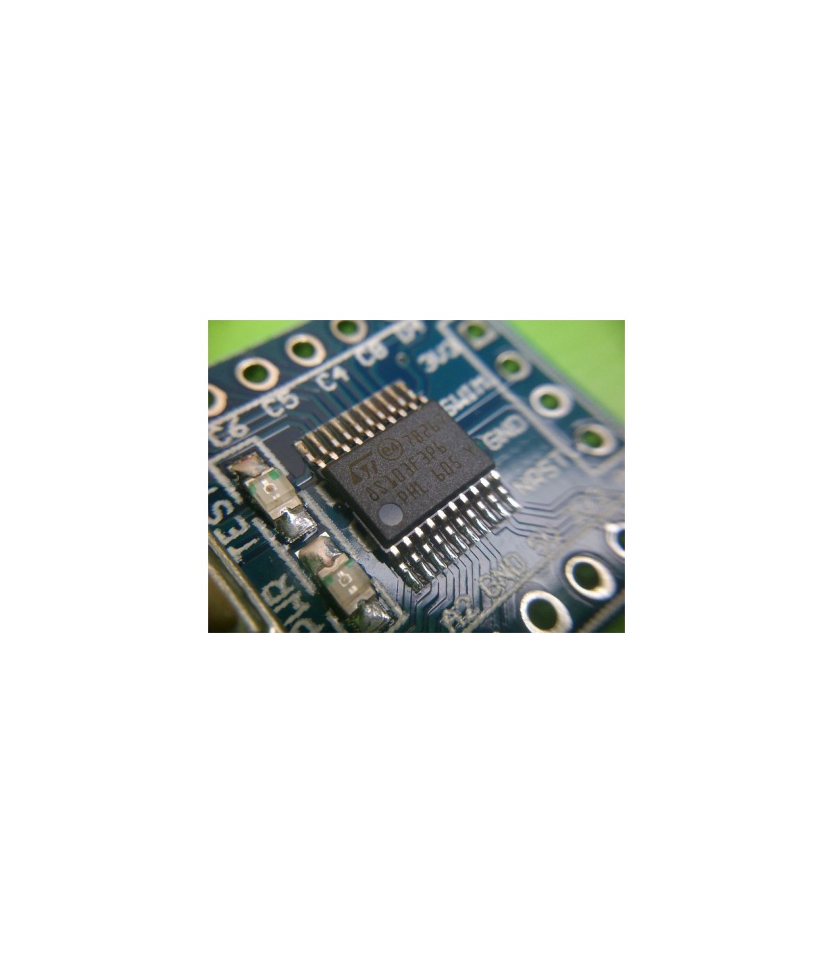 Теxнические характеристики Микроконтроллер: STM8S103F3 Напряжение питания: 5 В Тактовая частота: 16 МГц Флеш-память: 8 КБайт ОЗУ: 1 КБайт EEPROM: 128 байт Интерфейсы: SPI, I2C, UART, 10-бит АЦП, ШИМ Размер: 36.5 x 21.6 мм