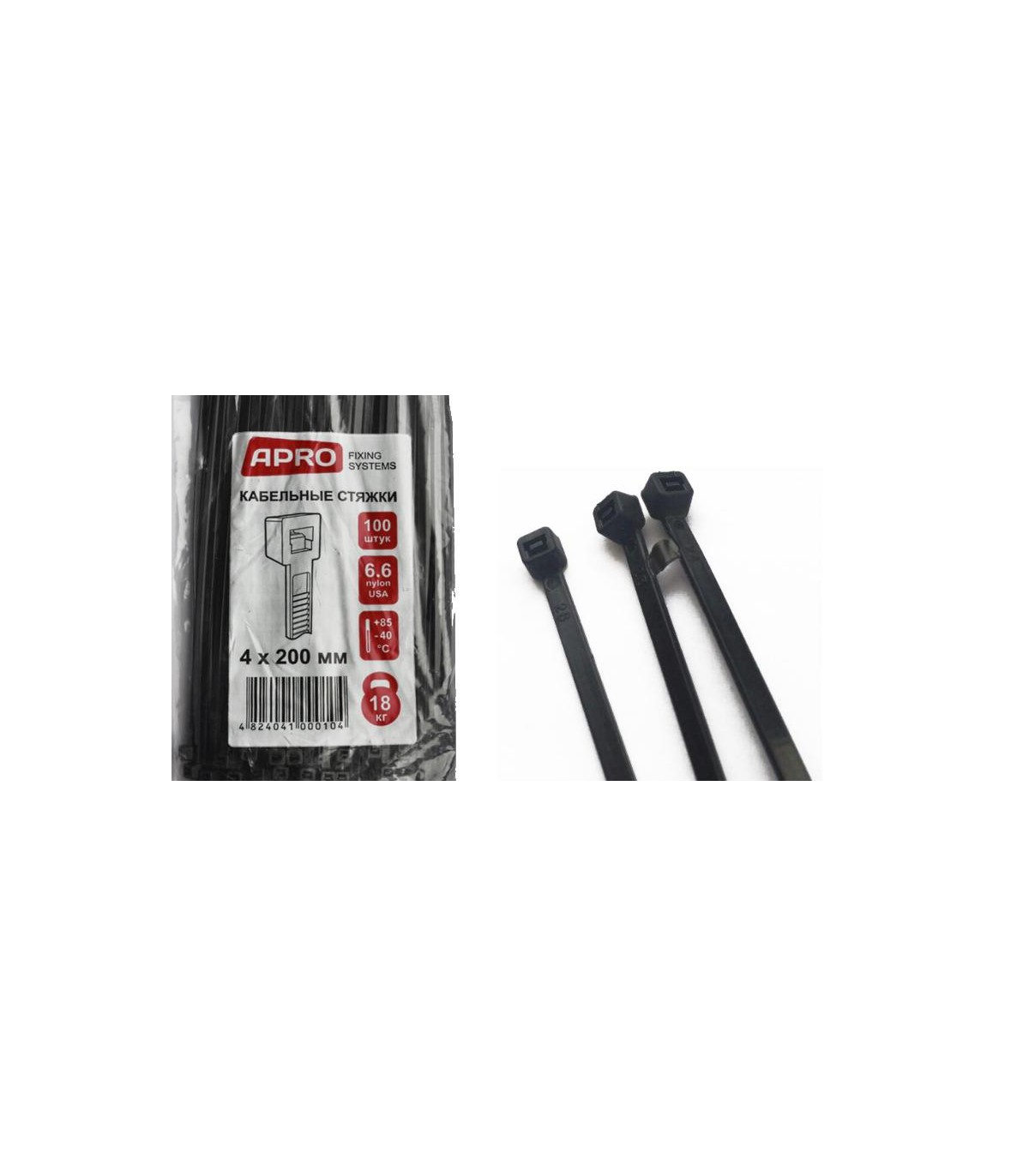 Кабельные стяжки 4*200мм 100штук 6.6 нейлон Apro.