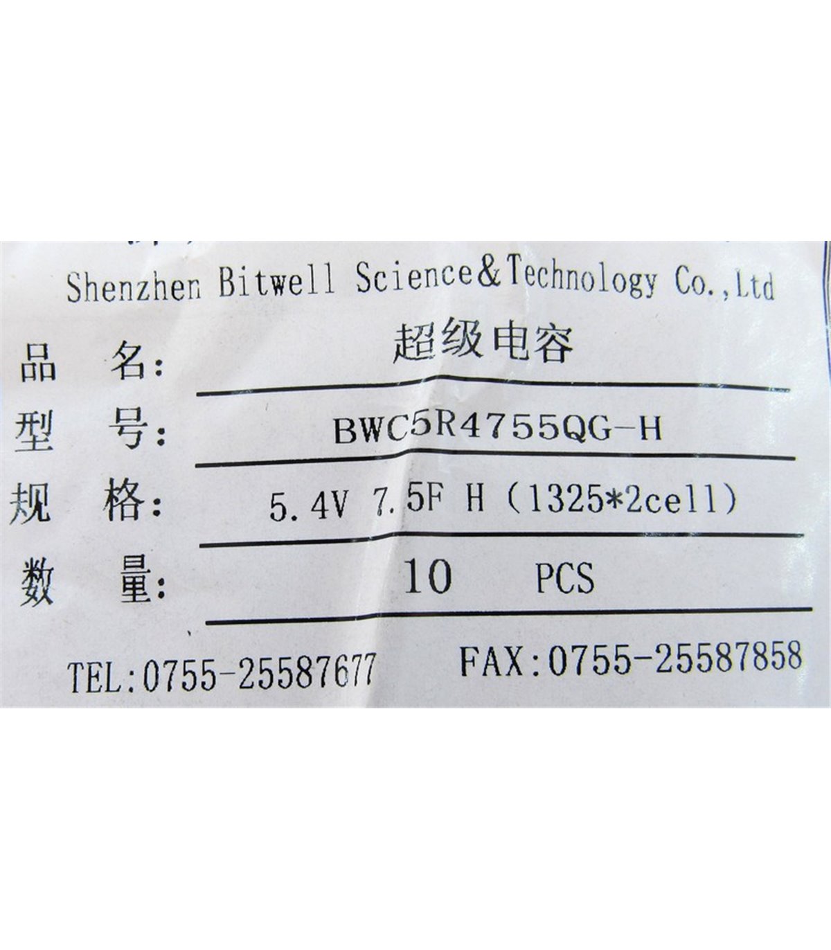 Ионистор суперконденсатор Bitwell 5.4V 7.5F.