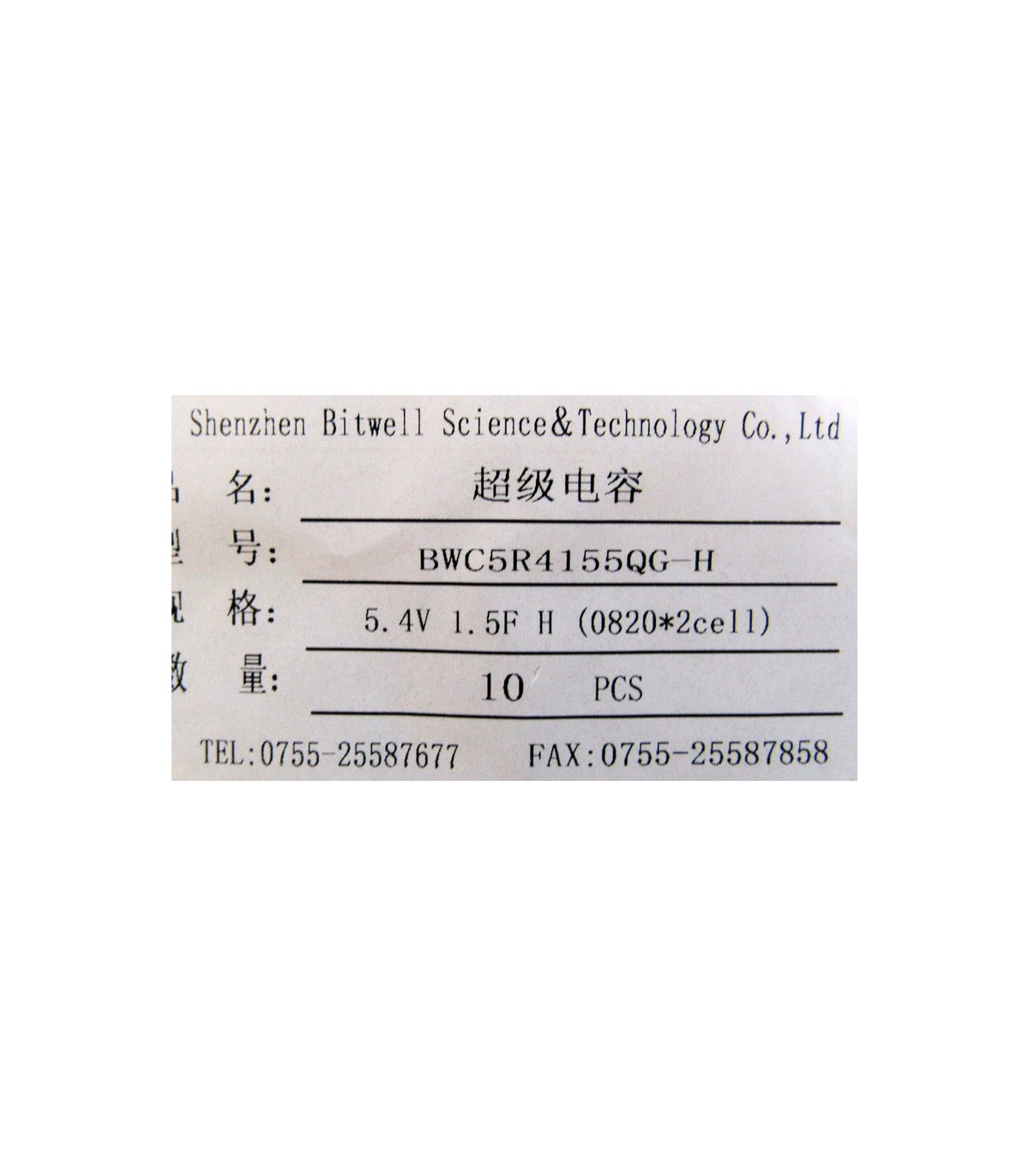 Ионистор суперконденсатор Bitwell 5.4V 1.5F (18521)