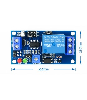 Реле задержки 12V с потенциометром.Реле задержки 12V включения или выключения 0.1 - 999 секунд.Реле задержки 12V включения или выключения применяется для управления двигателя, ламп, светодиодных модулей, мини-насосов...