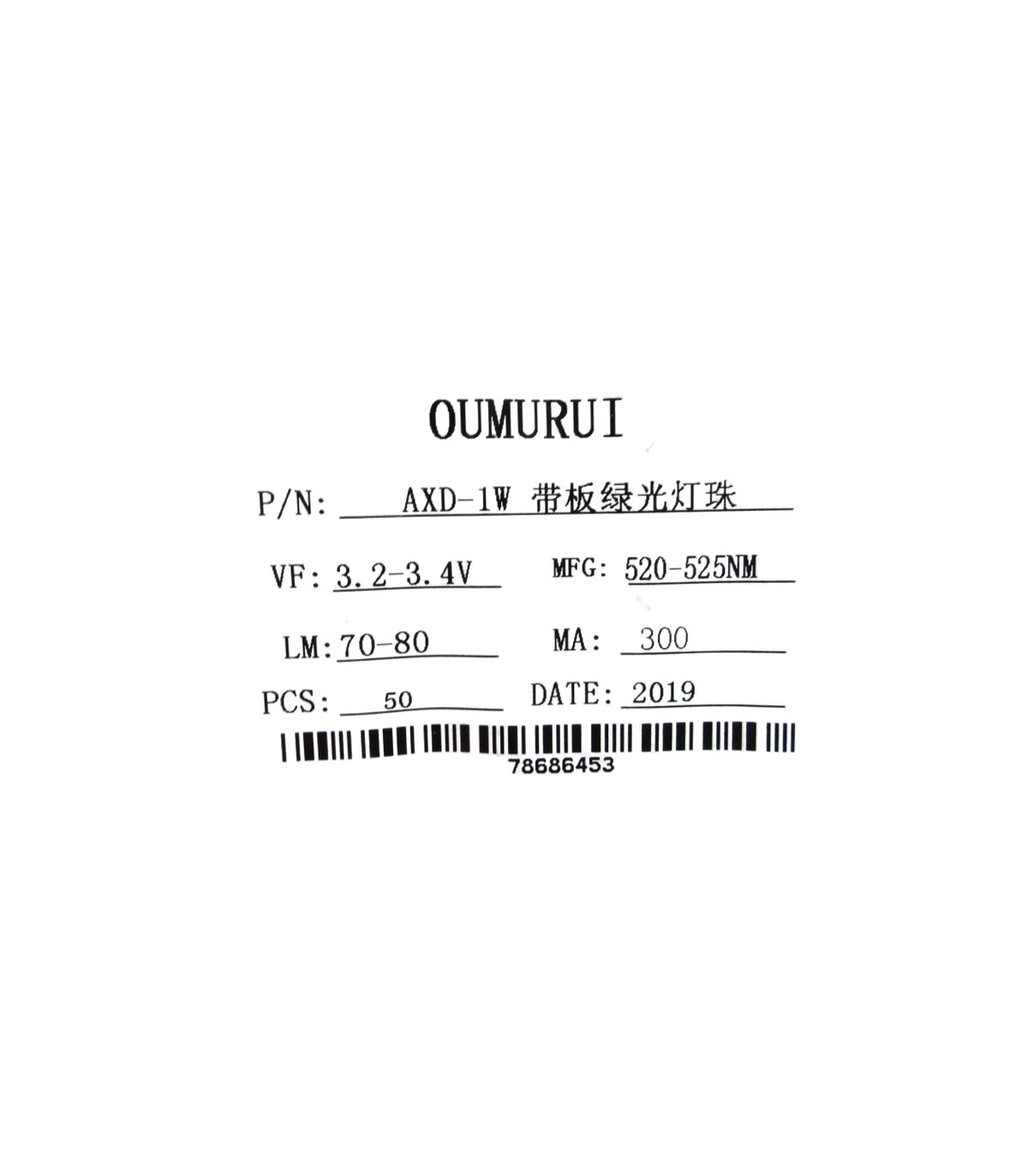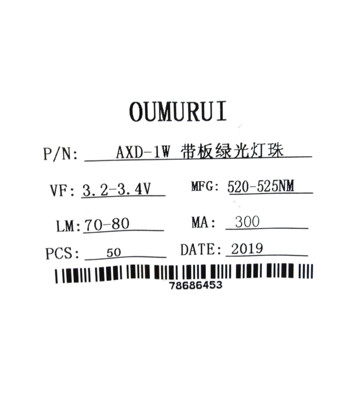 Технические характеристики: 1. Мощность:1Вт, 2. Цвет: зеленый, 3. Ток: 300 мА, 4. Переднее напряжение: DC3.2-3.4V, 5. Длина волны:520-525nm.