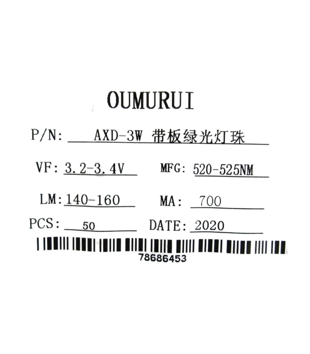 Технические характеристики: 1. Мощность: 3 Вт, 2. Цвет: зеленый, 3. Ток: 600-700 мА 4. Переднее напряжение: DC3.2-3.4V, 5. Длина волны: 520-525nm.