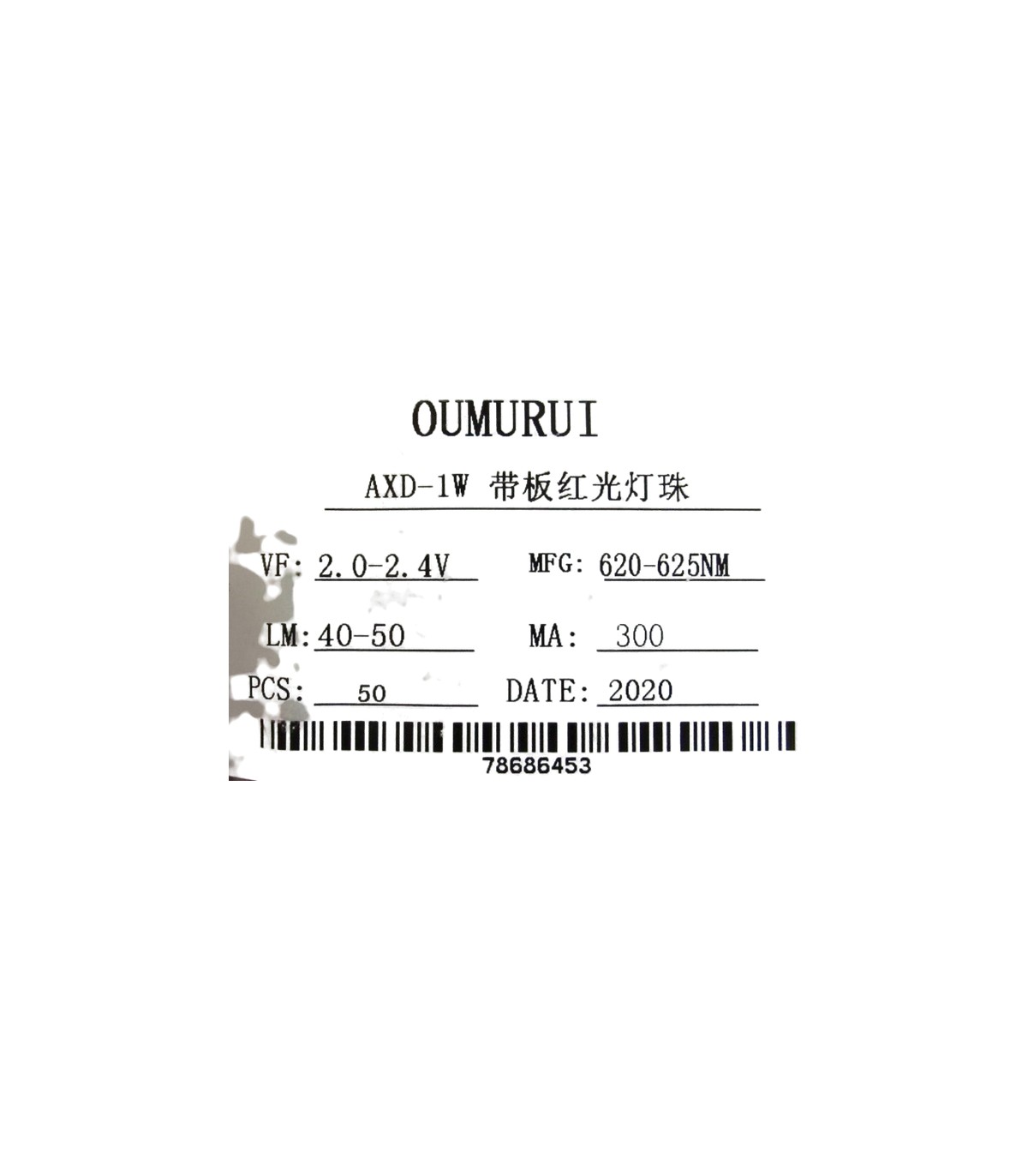 Технические характеристики 1. Мощность: 1Вт 2. Цвет: красный 3. Ток:300 мА 4. Переднее напряжение: DC3.2-3.4V 5. Длина волны: 620-625nm