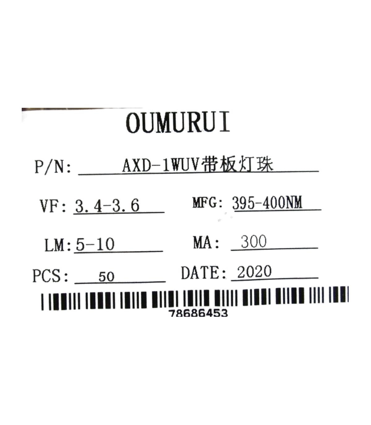 LED светодиод на радиаторе 1W 395-400nm ультрафиолет.ОсобенностиВысокая яркость, низкий светильник, энергосбережениеОтличным чипом качества, более длительный срок службыСрок службы: более 50000 часовТехнические характеристикиМощность: 1 ВтЦвет: ультрафиолетТок: 300мАНапряжение питания: DC3.4-3.6VДлина волны: 395-400nmМаркировка: AXD-1WUVЯркость: 5-10Lm