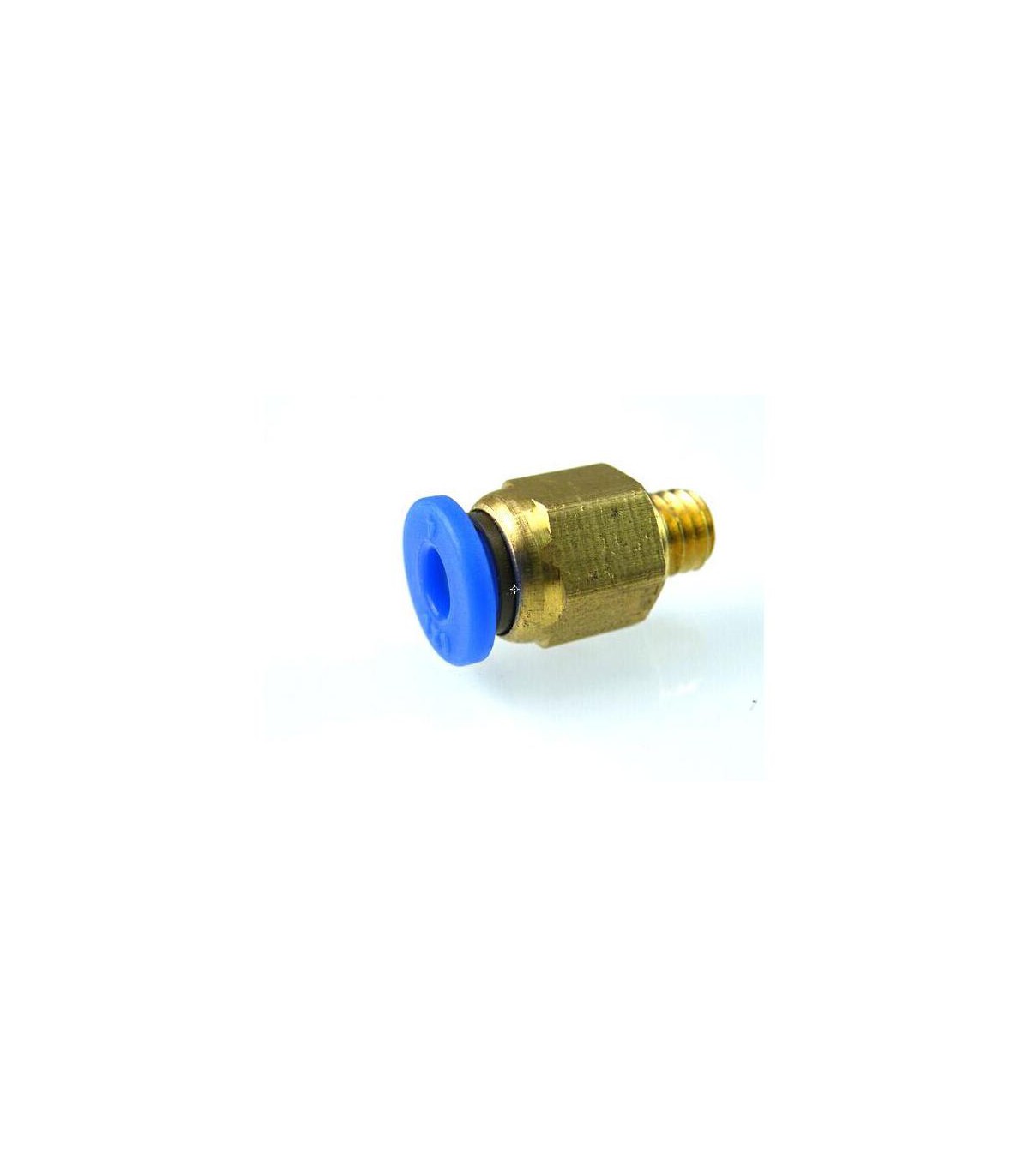 Крепление для 4 мм PTFE трубки подачи пластика. Соединяется с 3D принтером при помощи надежного резьбового крепления. Крепление фиксирует тефлоновую трубку установленную внутрь. Для того чтобы достать трубку необходимо нажать голубое кольцо вниз.