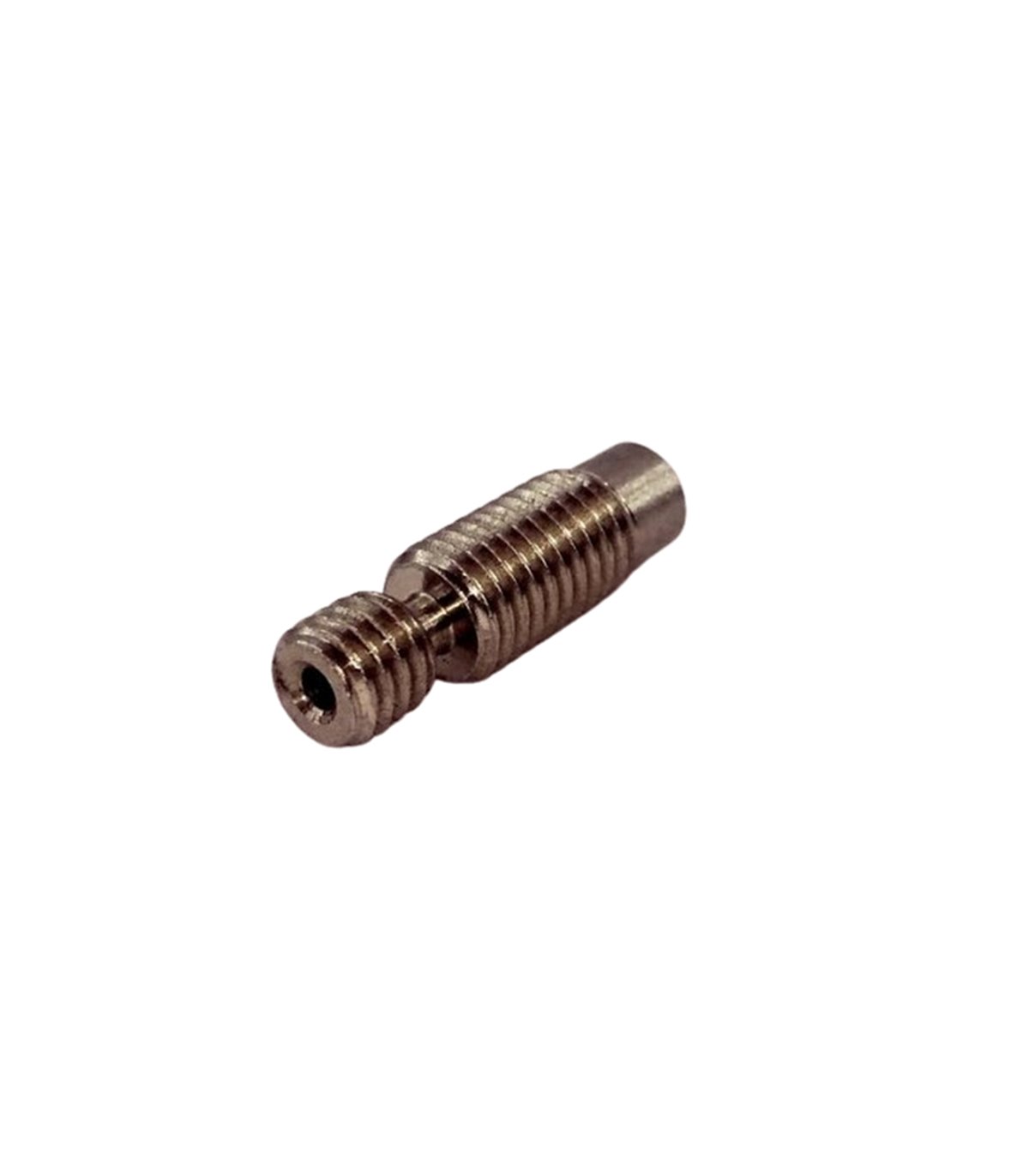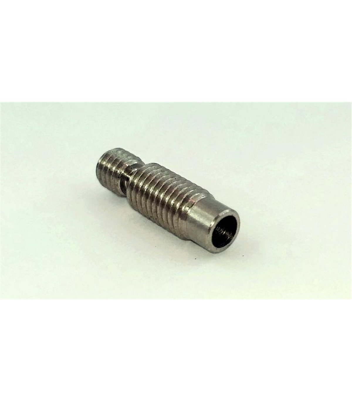 В конструкции любого 3D-принтера имеется такая очень важная деталь, как втулка с термобарьером. Устанавливается втулка в экструдер, через втулку идет подача нагреваемого пластика. Для того, чтобы пластик не застревал во втулке, можно установить тефлоновый сердечник, который повысит качество, безопасность и надежность работы вашего 3D-принтера. Втулка понадобиться как при сборе нового экструдера, так и при замене в уже имеющемся работающем экструдере. Технические характеристики Габариты втулки (диаметр х длина): 6 х 26 мм Внутренний диаметр втулки: 1.75 мм Наружный диаметр: резьба М7 Вес втулки: 3 г Ватериал втулки: сталь Цвет втулки: серебристый