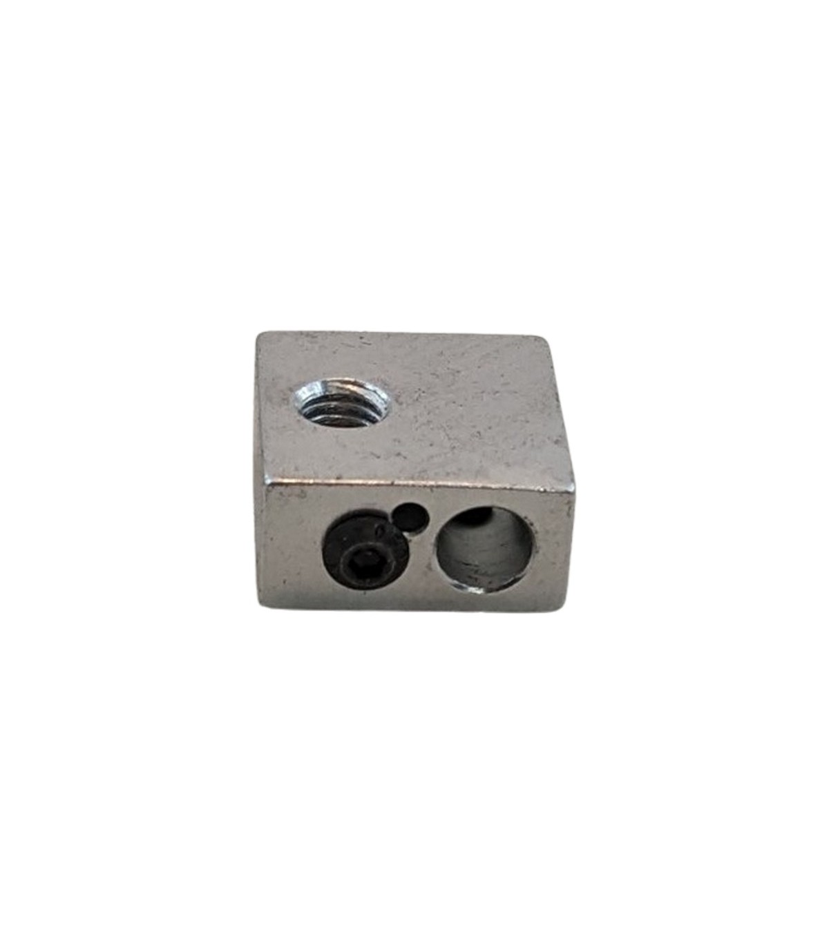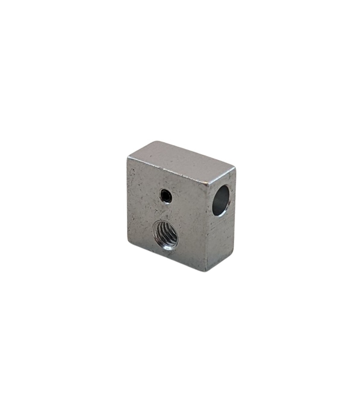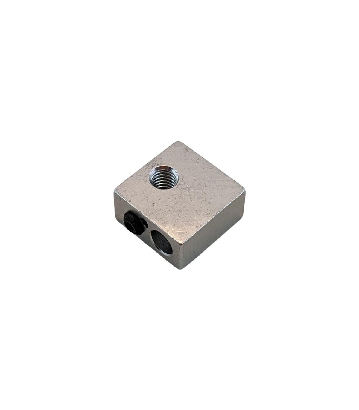 Алюминиевый нагревательный блок для хотэнда, экструдера 3D-принтера. Технические характеристики Диаметр отверстия для сопла и трубки-термобарьера: М6 Диаметр отверстия для нагревательного элемента: М7 Диаметр отверстия для терморезистора: М3 Монтажное отверстие: М3 Размер блока: 2 х 2 х 1 см
