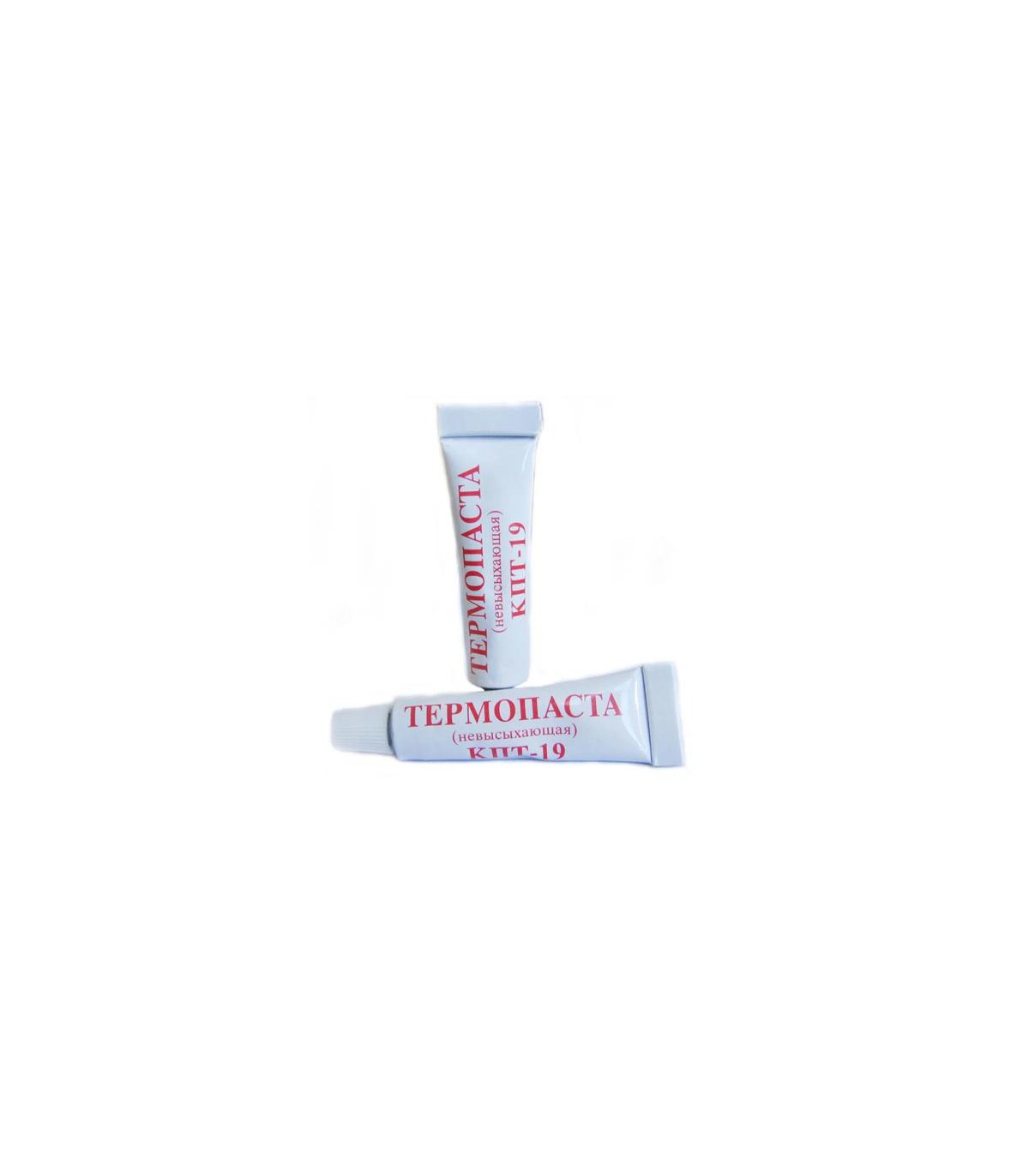 Термопаста КПТ-19 (невысыхающая) обеспечивает эффективный тепловой контакт между двумя соприкасающимися поверхностями (при ремонте, апгрейде ПК или в промышленной аппаратуре). Теплопроводная паста КПТ-19 на вид белая масса с сероватым оттенком и применяется при температурах от - 60°С до +180°С в компьютерах,  ноутбуках, для охлаждения светотехнической продукции, бытовой или промышленной аппаратуре. Технические характеристики   Органическая теплопроводная паста химически инертна Имеет процент металлических частиц, что способствует лучшему теплообмену при больших температурах Не оказывает раздражающего и общетоксического действия на организм Термопасту наносить аккуратно (без излишек), чтобы не произошло короткое замыкание