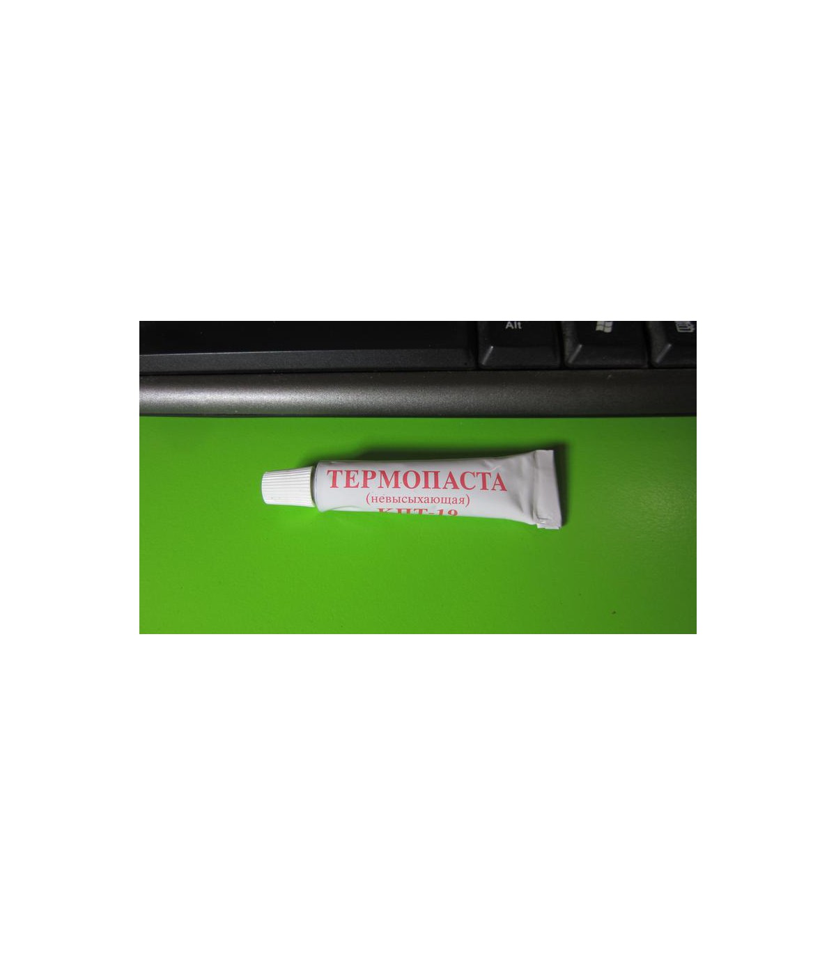 Термопаста КПТ-19 (невысыхающая) обеспечивает эффективный тепловой контакт между двумя соприкасающимися поверхностями (при ремонте, апгрейде ПК или в промышленной аппаратуре). Теплопроводная паста КПТ-19 на вид белая масса с сероватым оттенком и применяется при температурах от - 60°С до +180°С в компьютерах,  ноутбуках, для охлаждения светотехнической продукции, бытовой или промышленной аппаратуре.   Технические характеристики   Органическая теплопроводная паста химически инертна Имеет процент металлических частиц, что способствует лучшему теплообмену при больших температурах Не оказывает раздражающего и общетоксического действия на организм Термопасту наносить аккуратно (без излишек), чтобы не произошло короткое замыкание