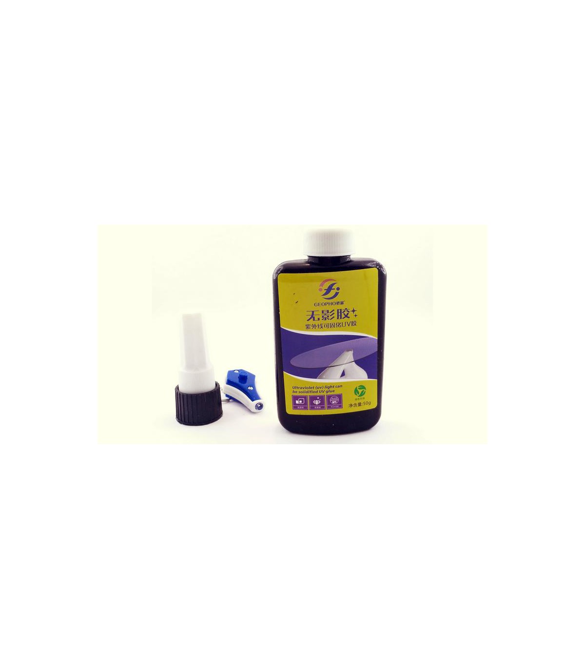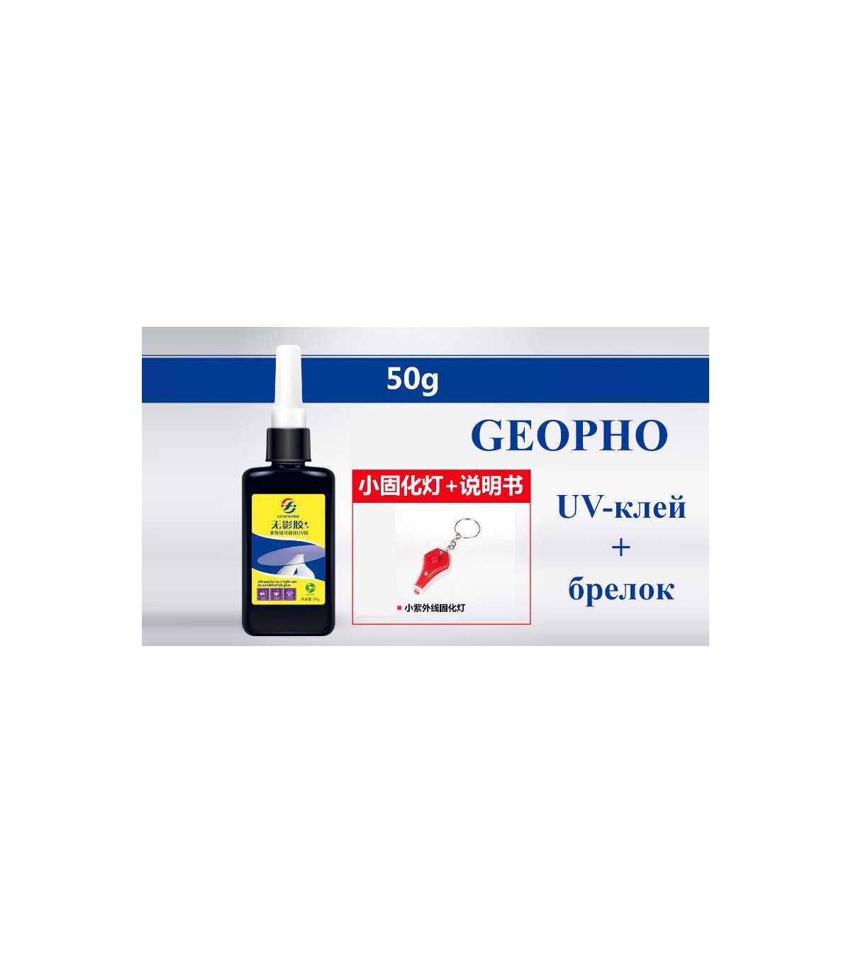 Ультрафиолетовый клей с брелком 50г Geopho UV-клей склеивание тачскринов. УФ клей еще называют фотополимерной смесью. Его главная составляющая – метакрилат.