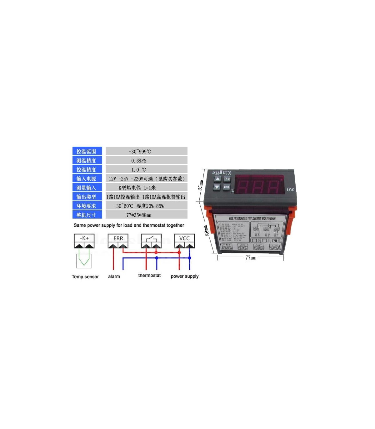 Xtwh w1308 цифровой регулятор температуры, термостат С ЛИЦЕВОЙ ПАНЕЛЬЮ. Терморегулятор универсальный цифровой программируемый -55 ~ +120 °C с выносным герметичным термодатчиком NTC. Модуль ЦИФРОВОГО ТЕРМОРЕГУЛЯТОРА С...