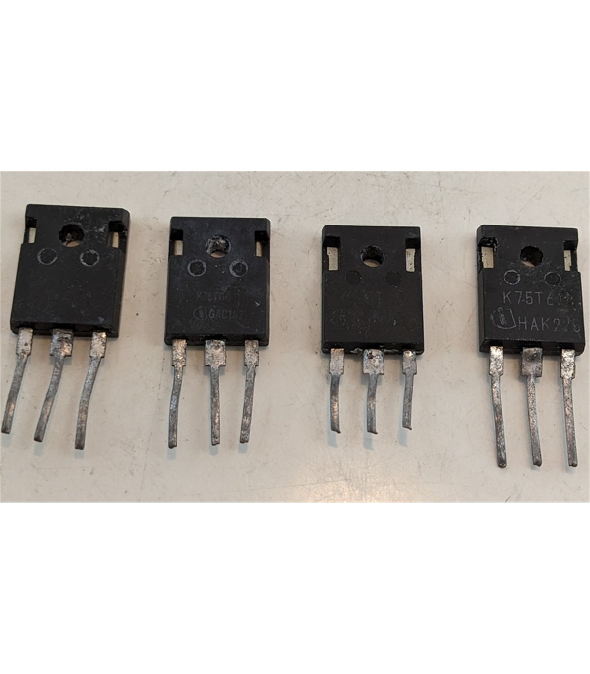 Транзистор K75T60 IKW75T60T 75A 600V IGBT N-Ch TO247. Транзисторы оригинальные, выпаяные на производстве, ножки короче, чем у новых.