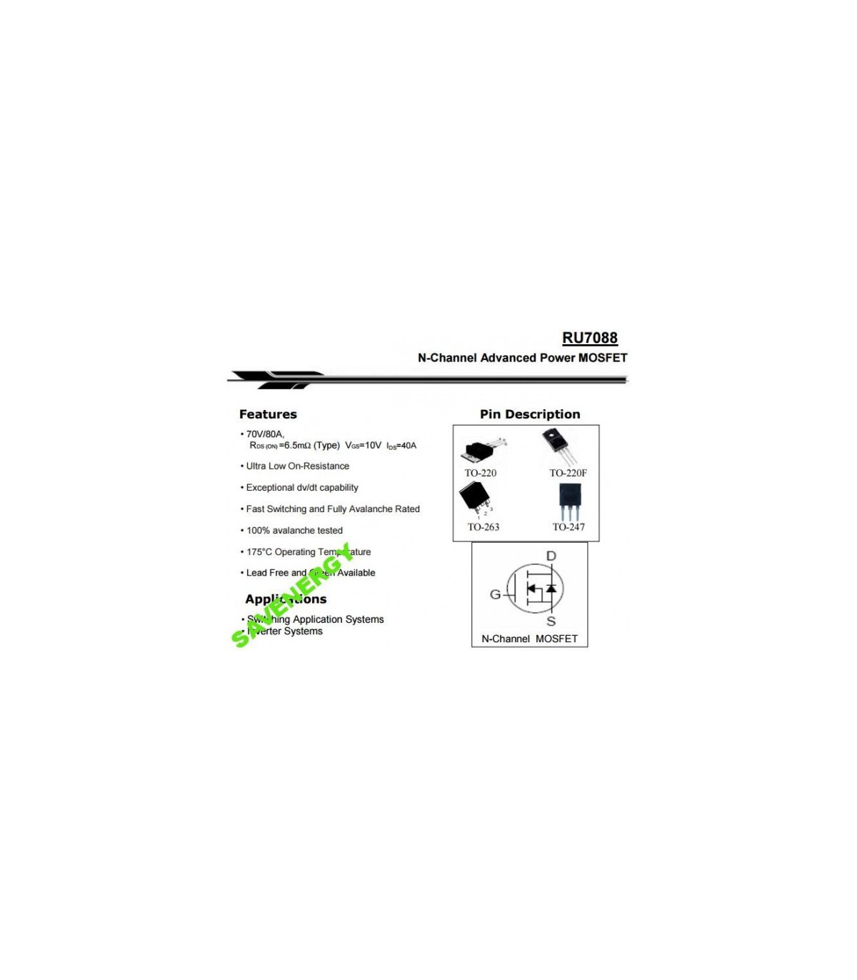 Регулятор напряжения RU7088R to 220 Mosfet. Регуляторы выпаяные. Технические характеристики Параметры: 75V / 80A RDS (ON) = 7mΩ (тип) VGS = 10VIDS = 40A Сверхнизкое сопротивлением Быстрое переключение Рабочая температура: 175 °C