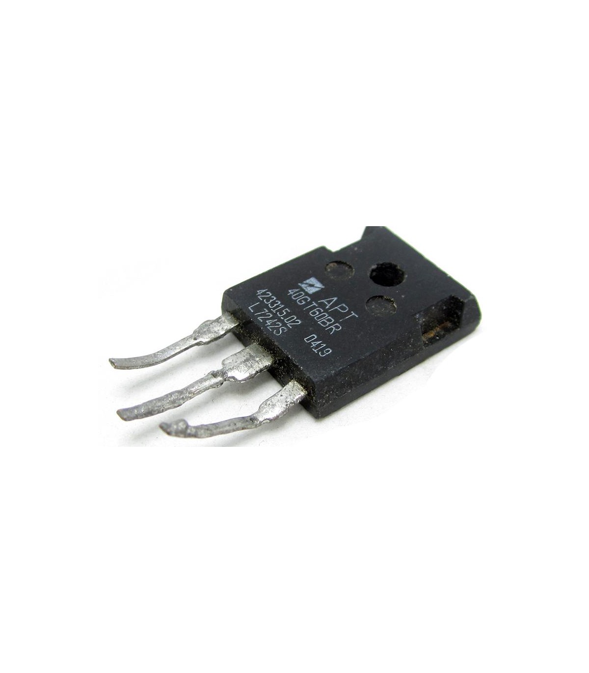 Транзистор APT40GT60BRG N-Ch TO247 600V 20A. Транзисторы заводские, хорошего качества, но не новые, - выпаянные. На ножках заметные следы припоя, ножки обычно короткие.