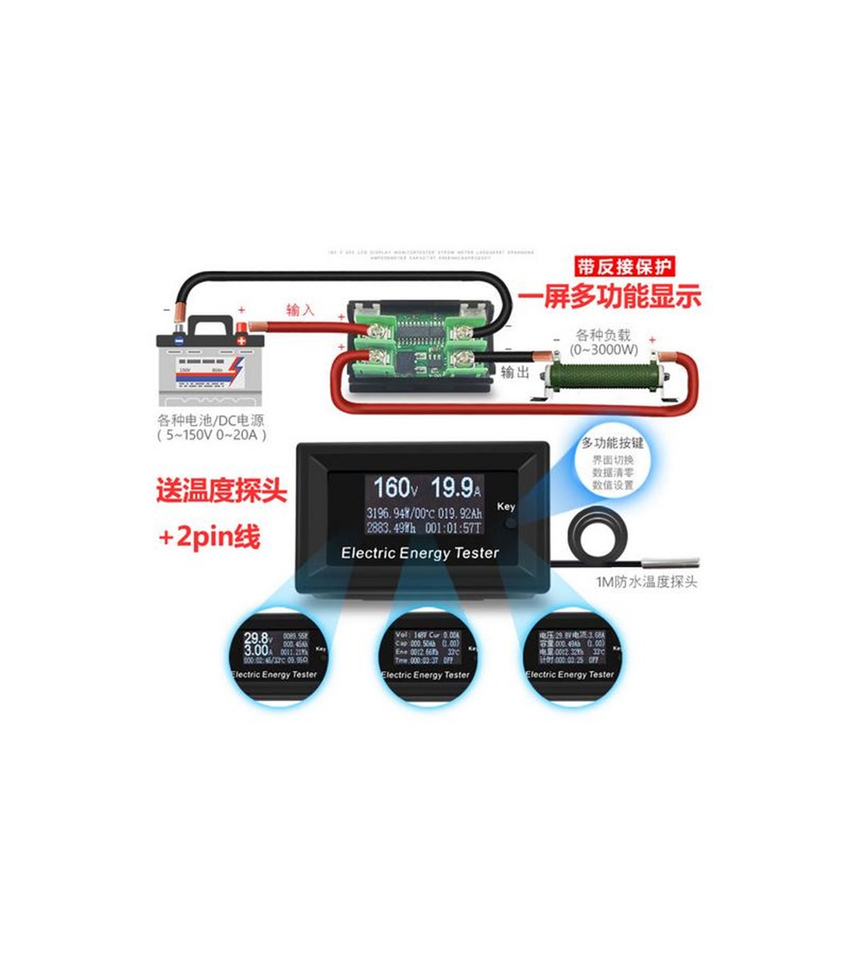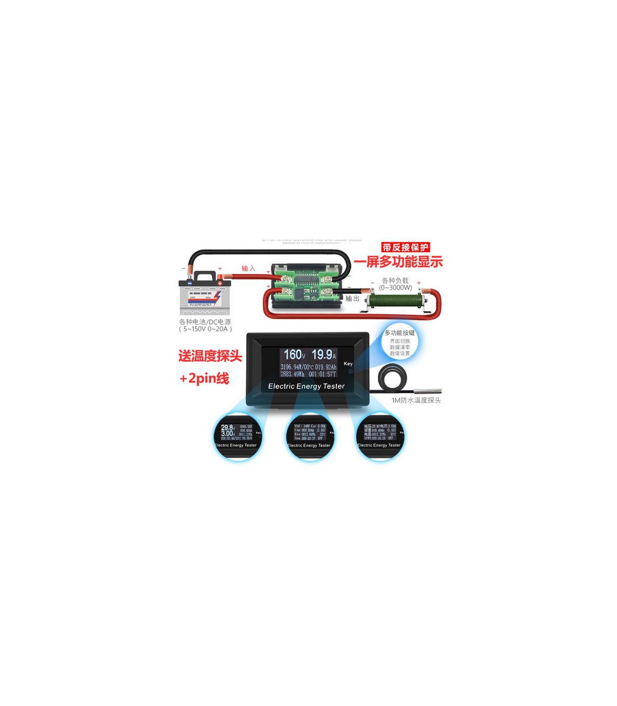 Цифровой тестер ваттметр 7 в 1 с OLED-дисплеем DC 300V 20A.