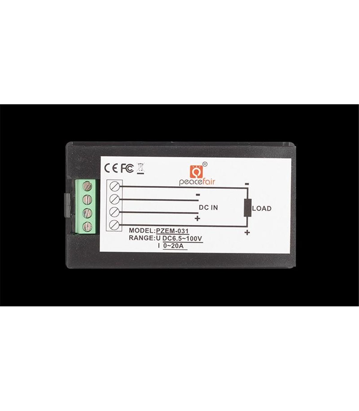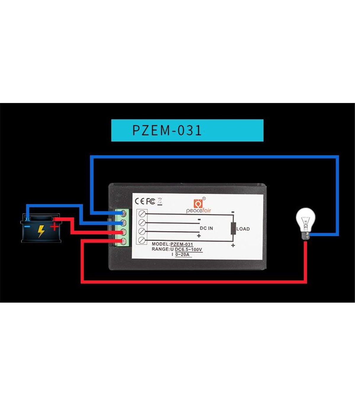 Ваттметр вольтметр амперметр DC 6.5-100V 20A PEACEFAIR PZEM-031. Широко используется в автомобилях, лодках, мотоциклах и испытательных устройствах для измерения напряжения и тока. Применяется в оборудовании и электромеханических устройствах, мониторинге батарей, солнечных и ветро генераторах и т.д.