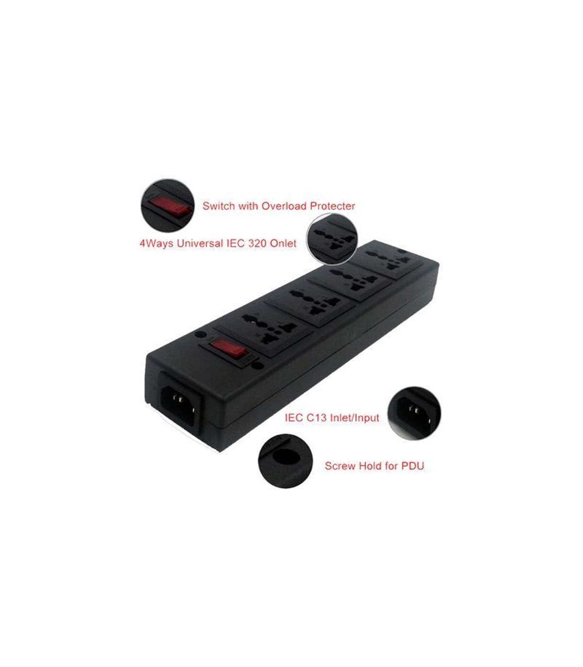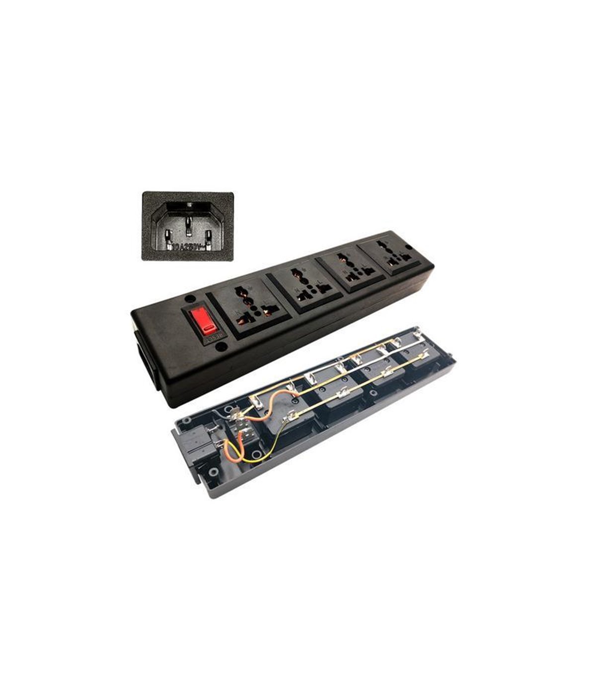 Удлинитель на 4 универсальные розетки с выключателем. Размеры: 240*55*35мм.