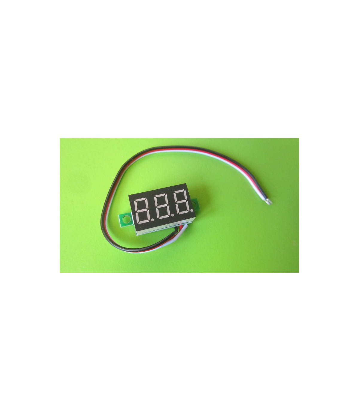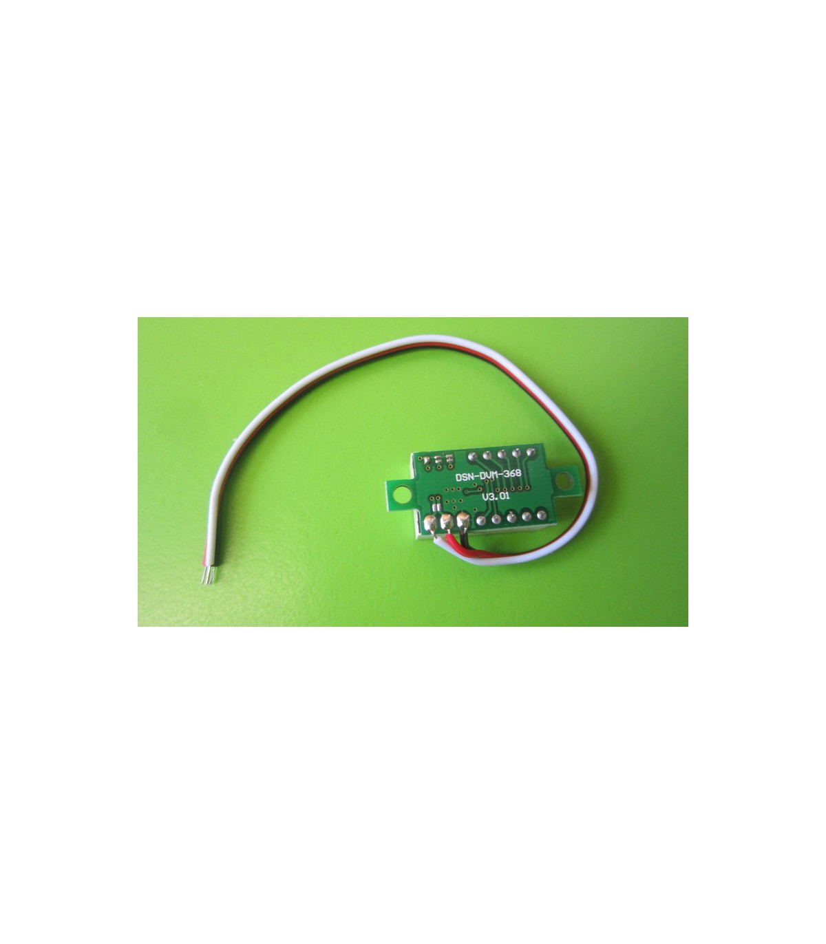 Цифровой встраиваемый вольтметр постоянного тока. Применение: цифровой светодиодный вольтметр постоянного (DC) напряжения от 0 до 30 вольт. Исполнение: малогабаритный встраиваемый модуль без корпуса. Технические характеристики Цвет свечения: красный Период обновления показаний фиксированный: 0,5 сек. (2 раза в секунду) Точность измерения: 1%, с округлением до ближайшего знака Линейность шкалы измерения: 1% Входное сопротивление измерительного входа с модификацией под дополнительный вход питания ... более 100 кОм Диапазон рабочих температур: от -10C до + 60C Размер: 23х15х10 мм
